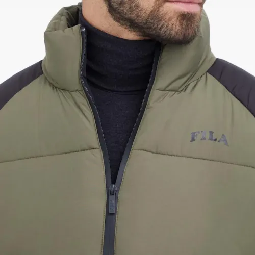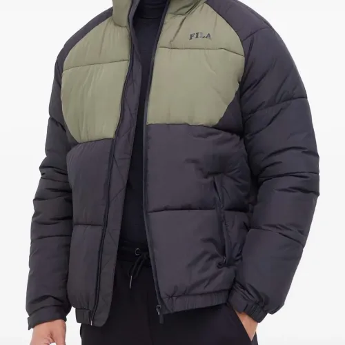 серый пуховый дизайн, застёжка на молнии, передние карманы, принт с логотипом