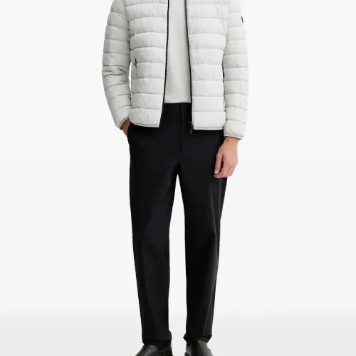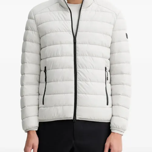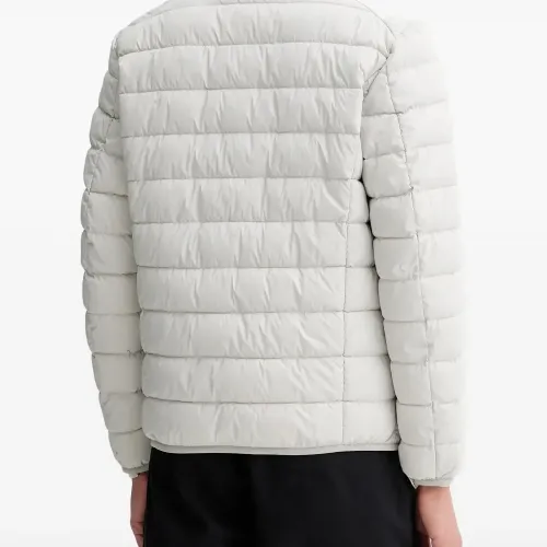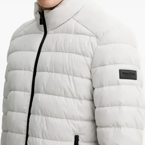 светло-серый цвет, горизонтальная стёжка, застёжка-молния, воротник-стойка, боковые карманы на молнии, нашивка с логотипом