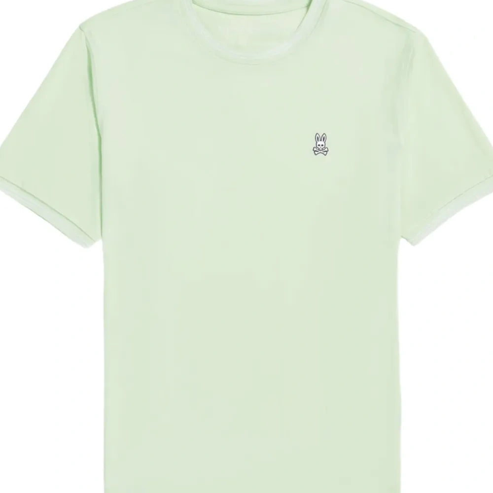 светло-зеленая футболка с круглым вырезом, короткими рукавами и вышитым логотипом