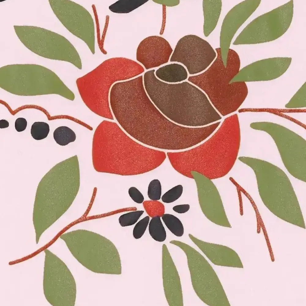 светло-розовая футболка из интерлока с принтом роз и ребристым воротником