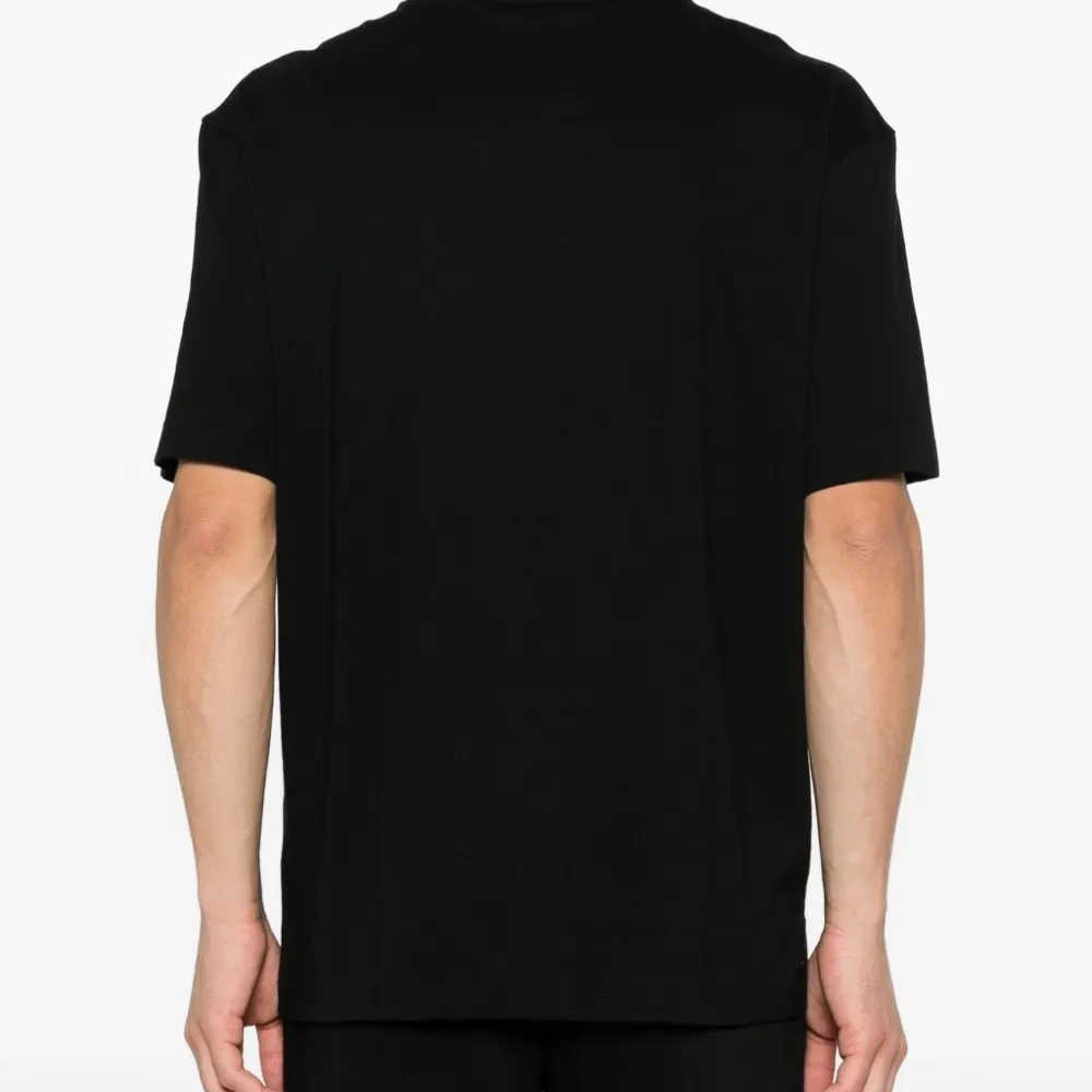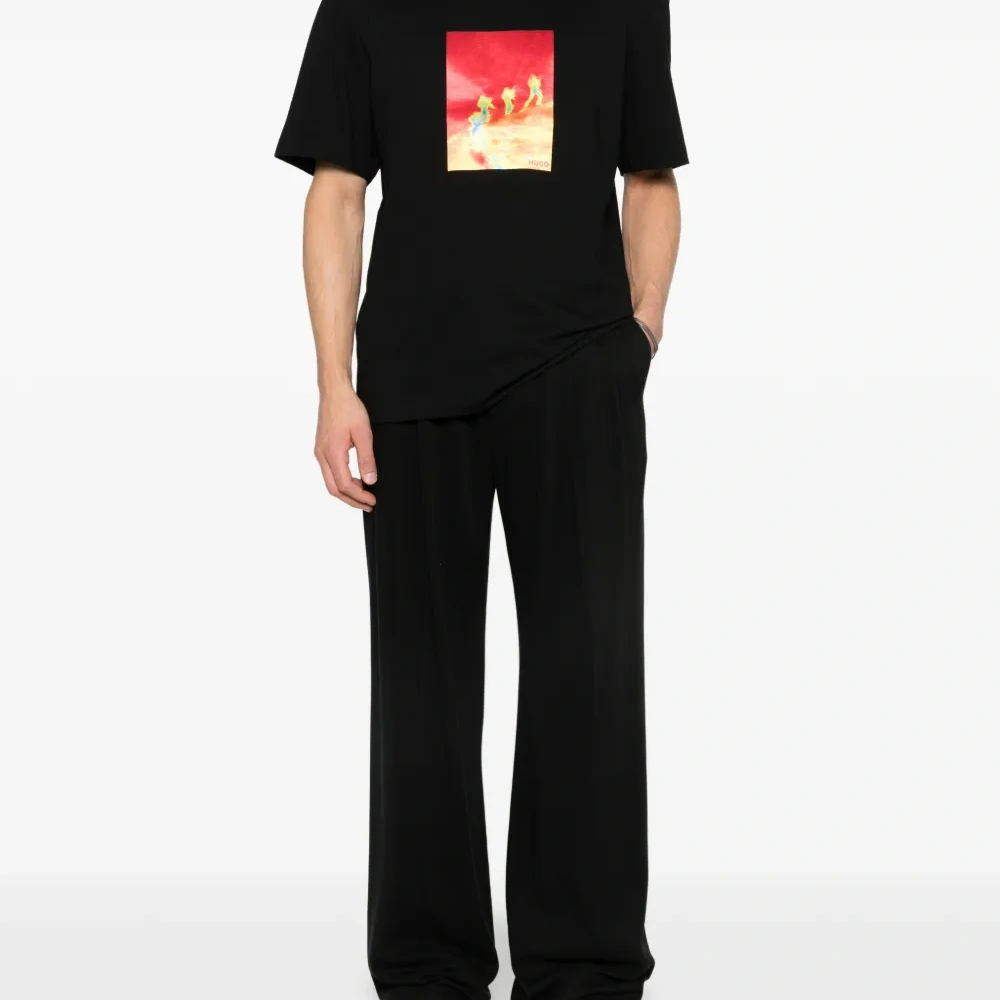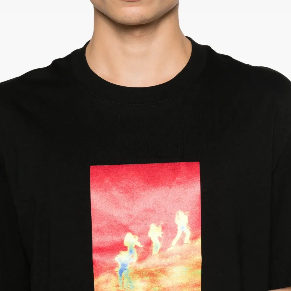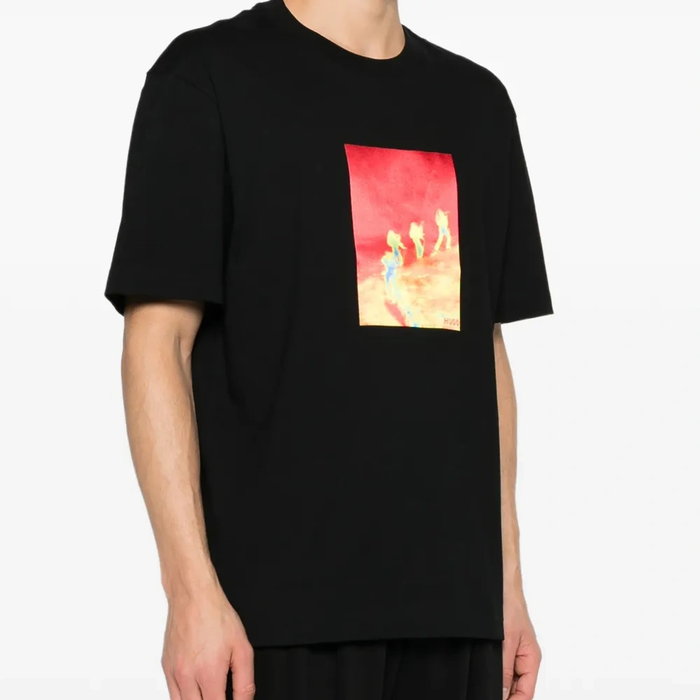 чёрная футболка с графическим принтом, круглый вырез, короткие рукава