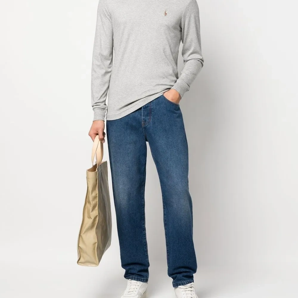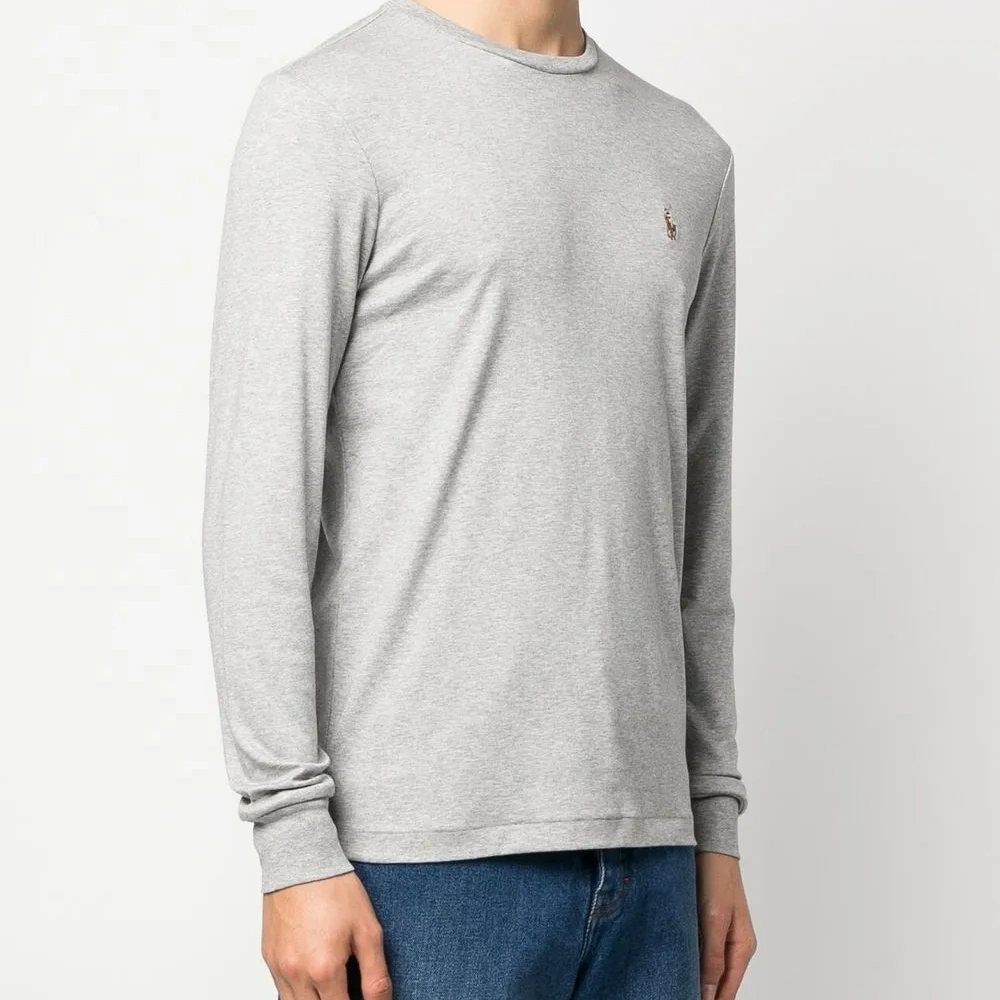 Светло-серый, хлопок, ткань джерси, знаковый логотип Polo Pony, круглый вырез, длинные рукава и прямой подол.