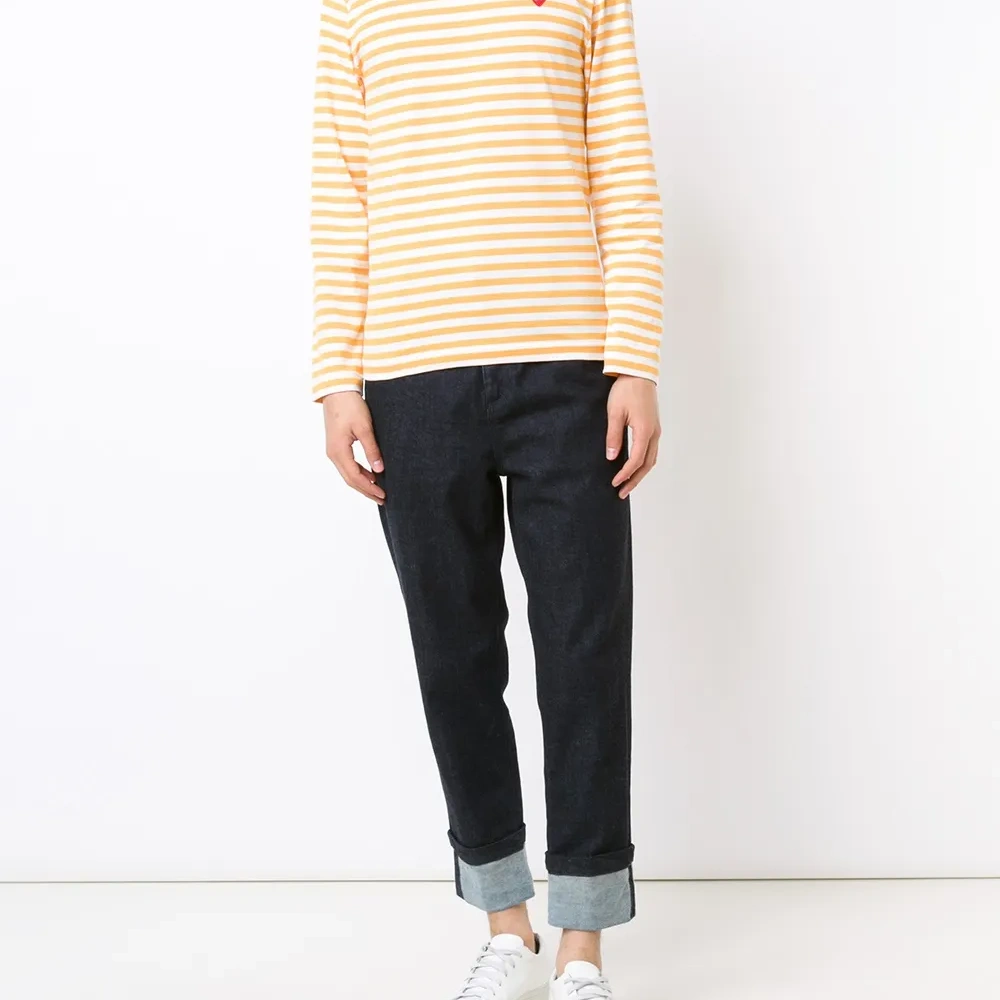 Желтая с белым хлопковая полосатая кофта с длинными рукавами от Comme Des Garçons Play.