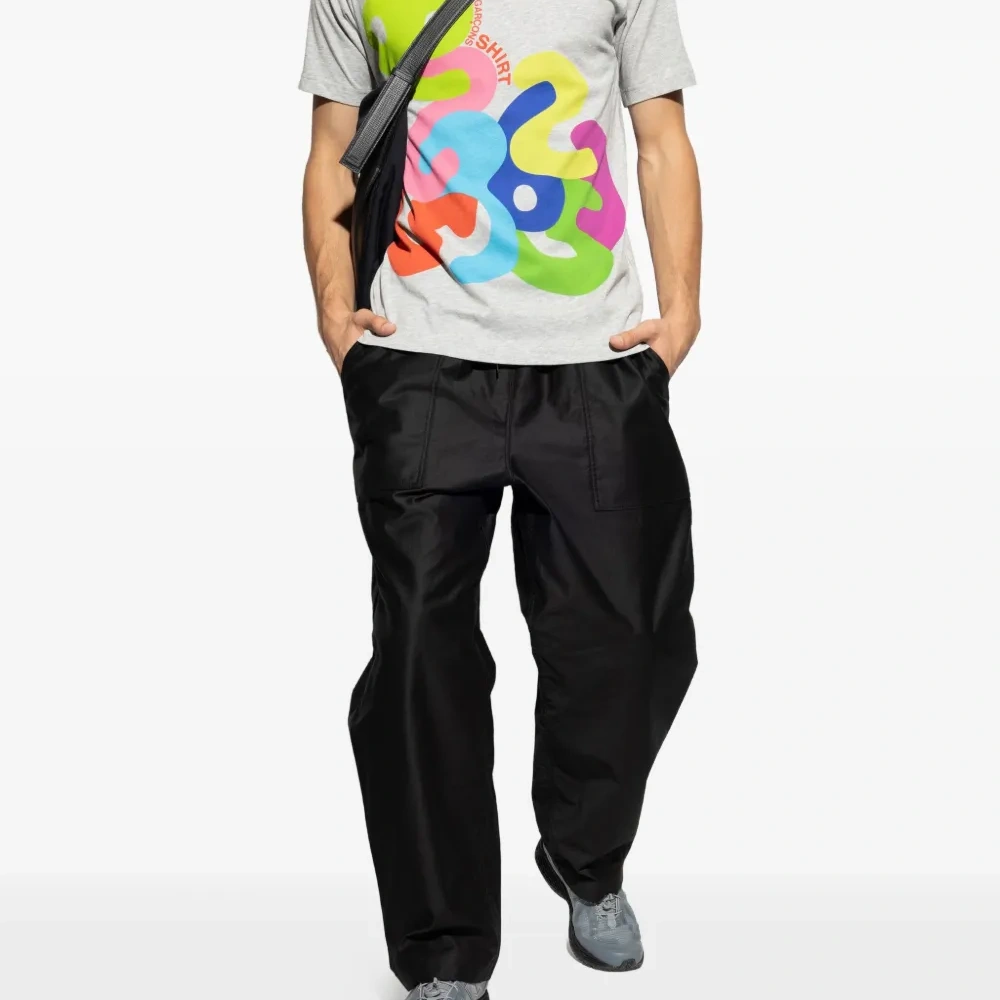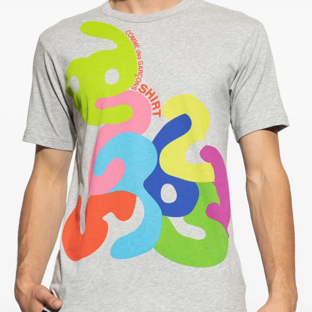 серый хлопковый свитшот с круглым вырезом, короткими рукавами и абстрактным принтом