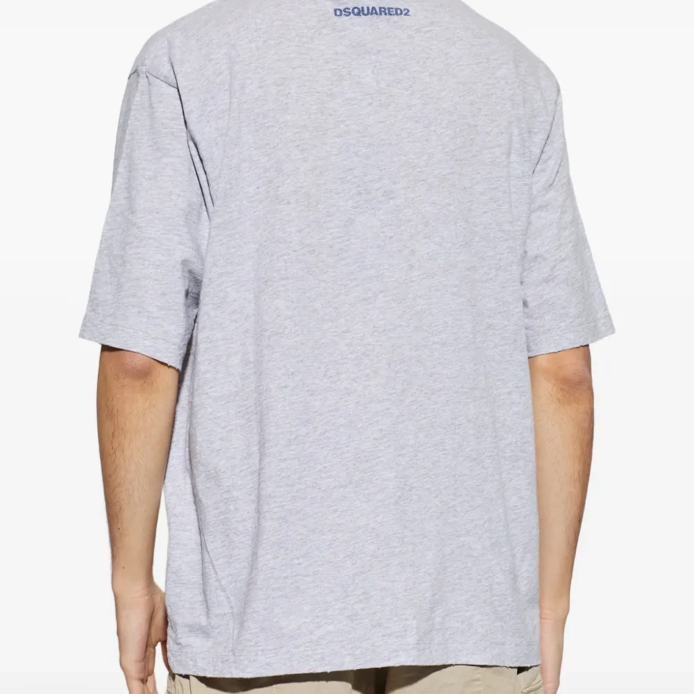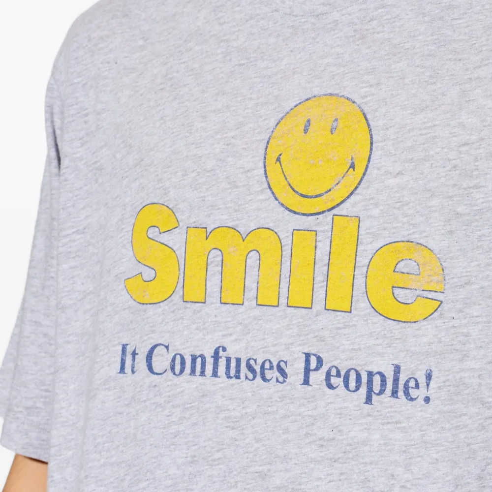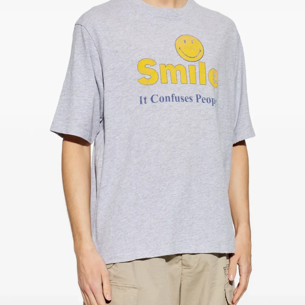 серая футболка с графическим принтом, круглым вырезом и короткими рукавами