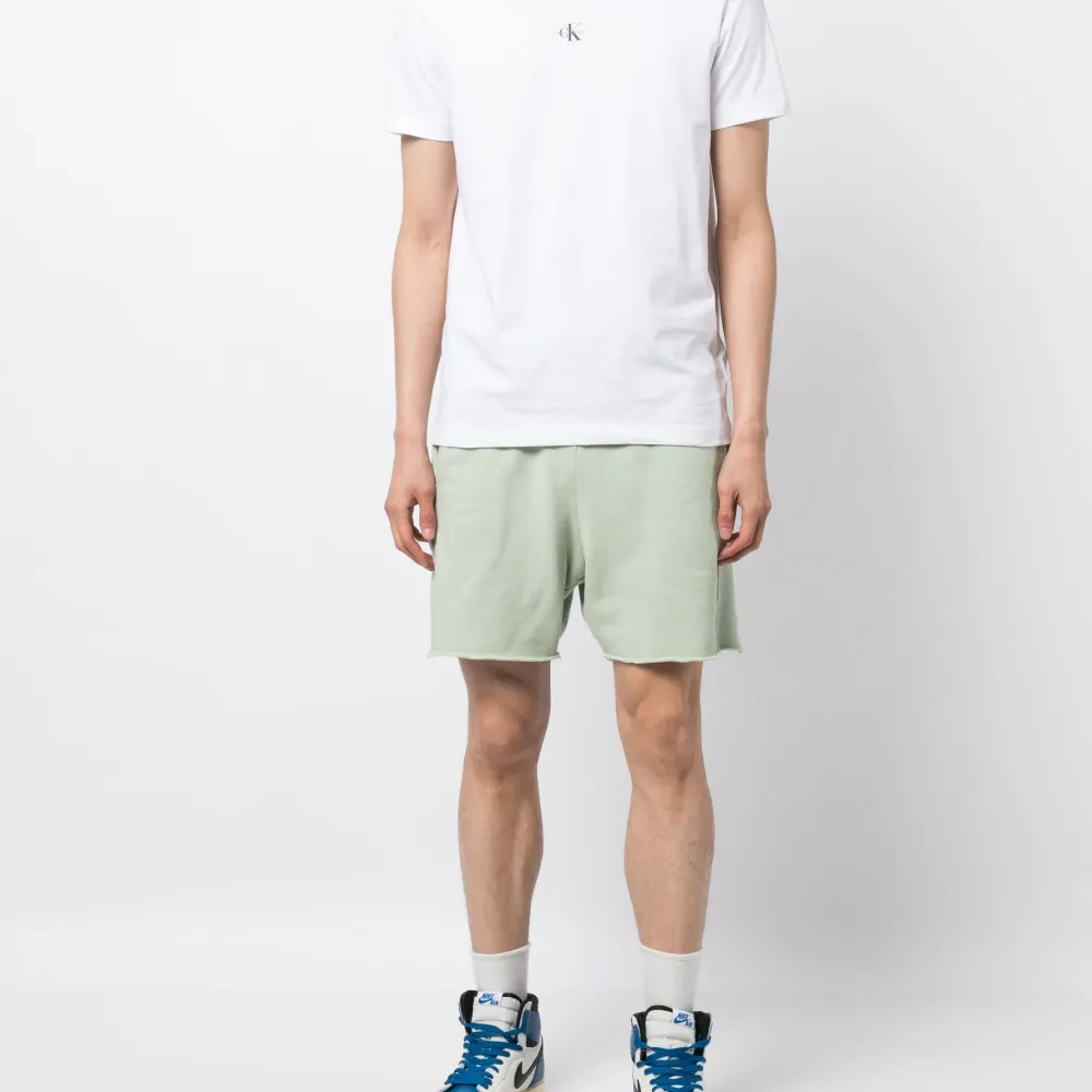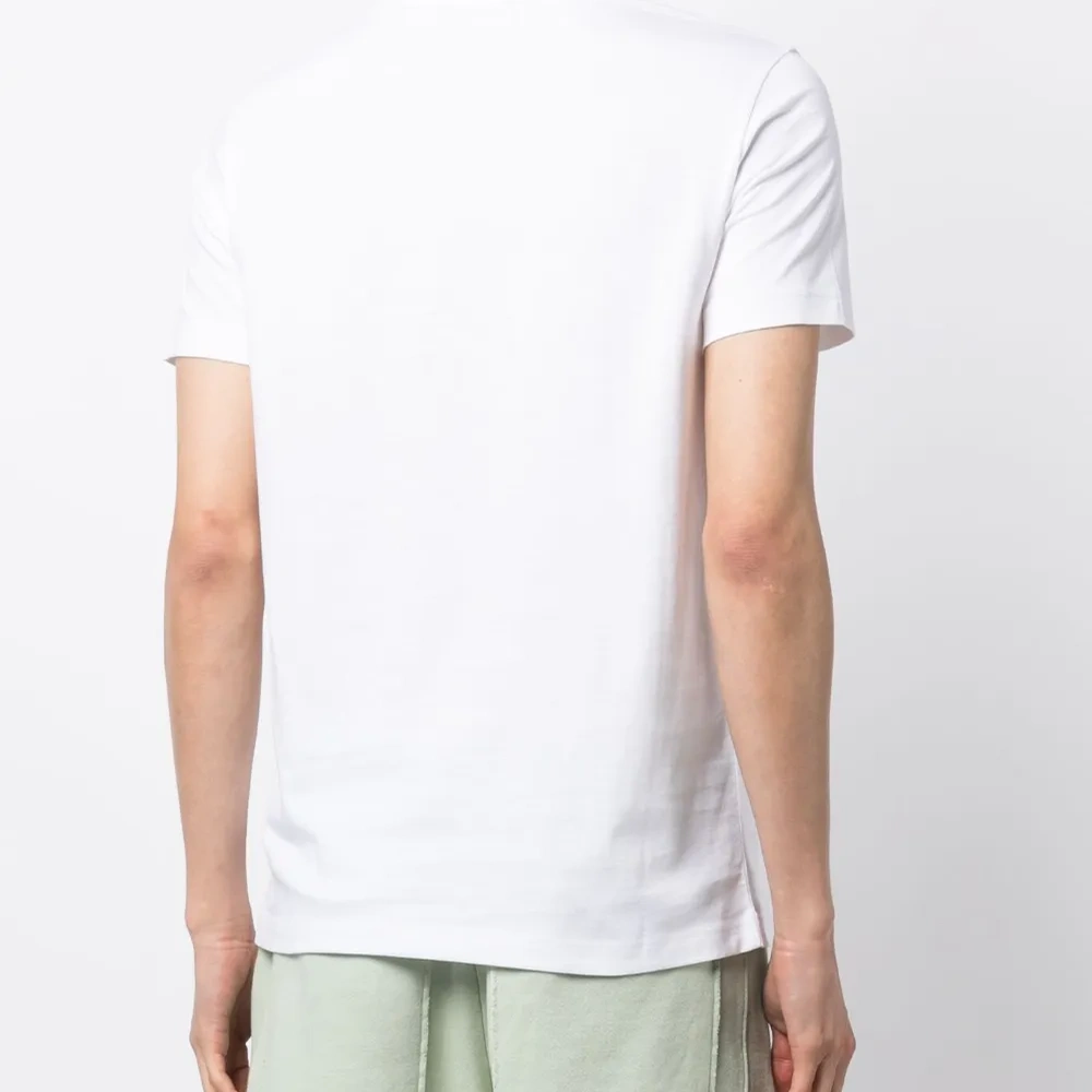 Белый, хлопок, принт с логотипом на груди, круглый вырез, короткие рукава и прямой подол.