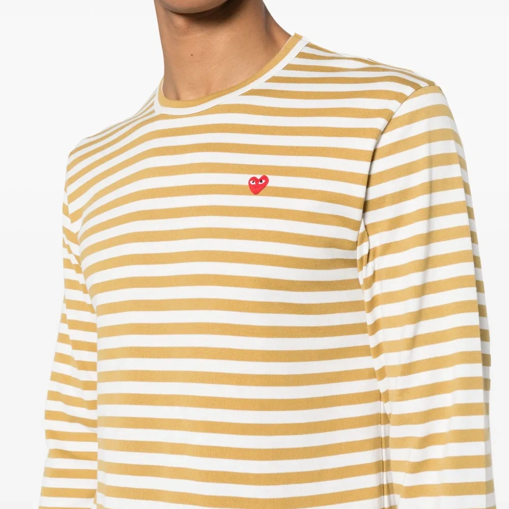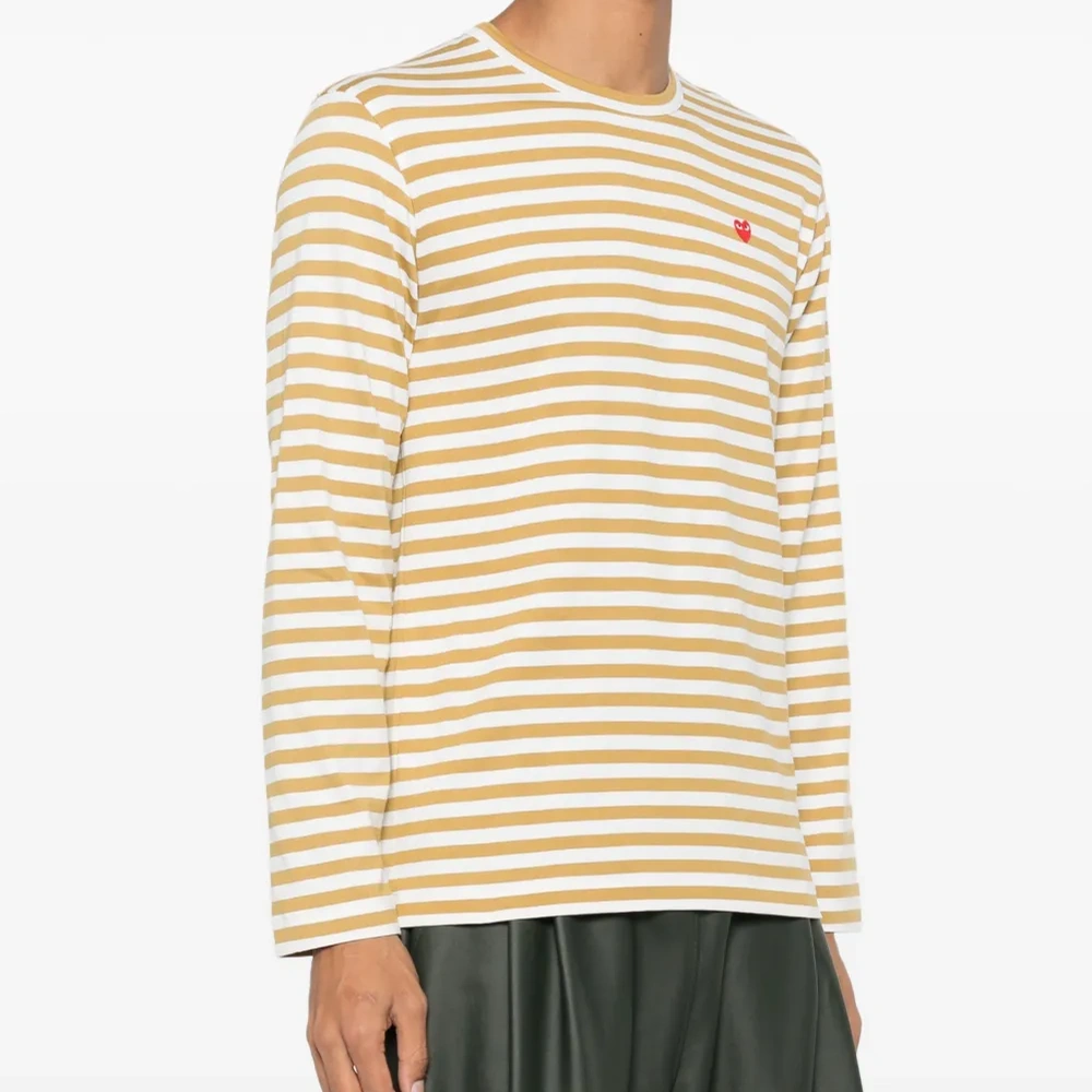 Белая с желтым хлопковая полосатая толстовка свободного кроя от Comme Des Garçons Play.