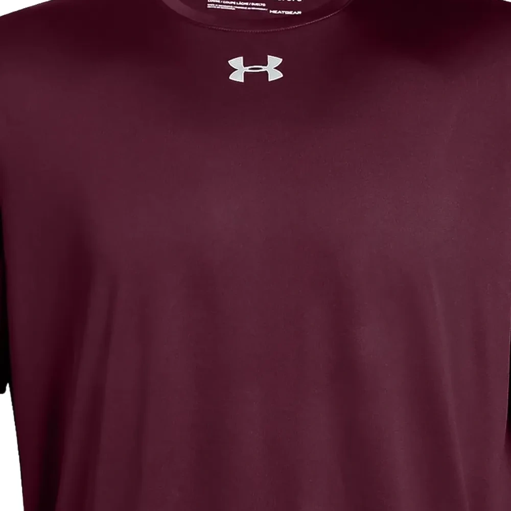 бордовая футболка с короткими рукавами, круглым вырезом и логотипом
