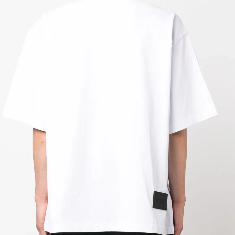 Кремовый, хлопок, логотип спереди, нашивка с логотипом сзади, круглый вырез, короткие рукава и прямой подол. Это унисекс-модель. Обратите внимание, что для нее используется мужская размерная сетка.