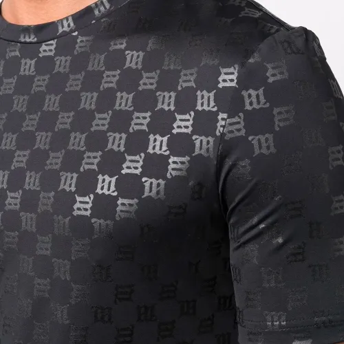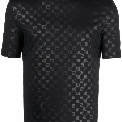 Ткань джерси, сплошной принт с логотипом, круглый вырез и короткие рукава. Цвет: черный.