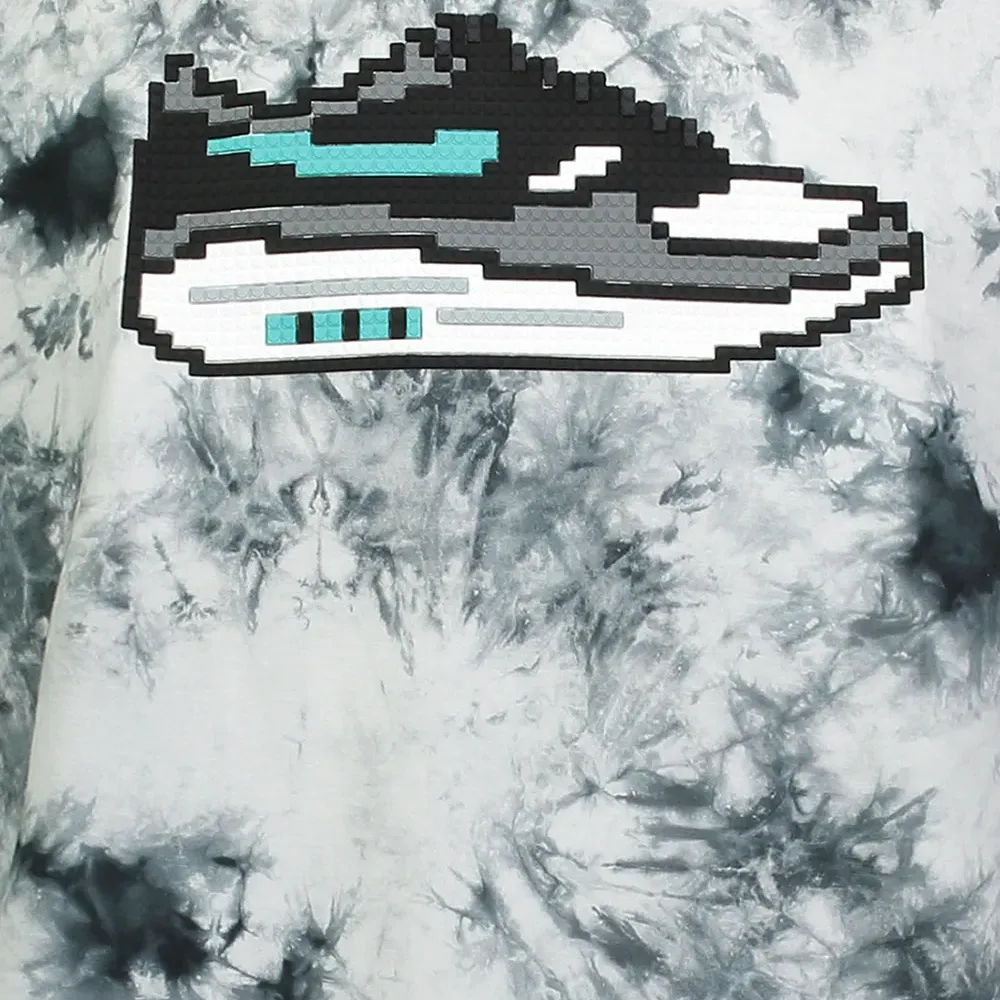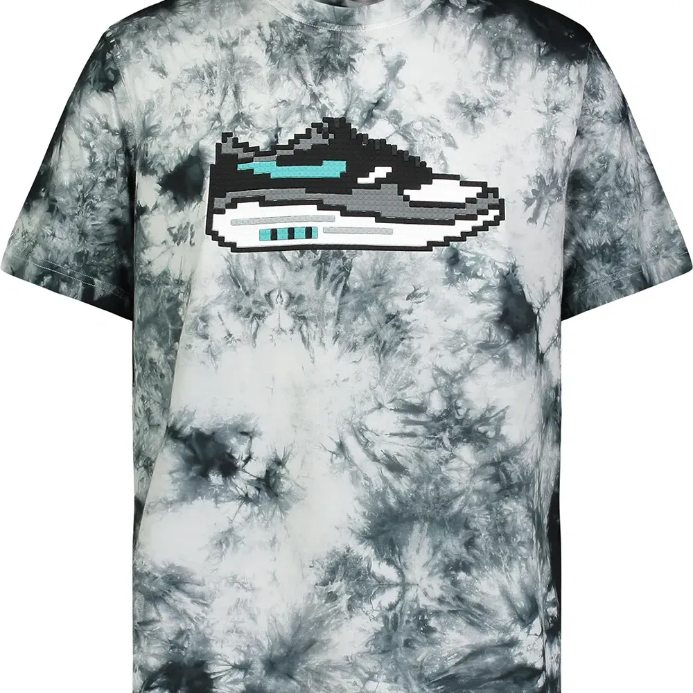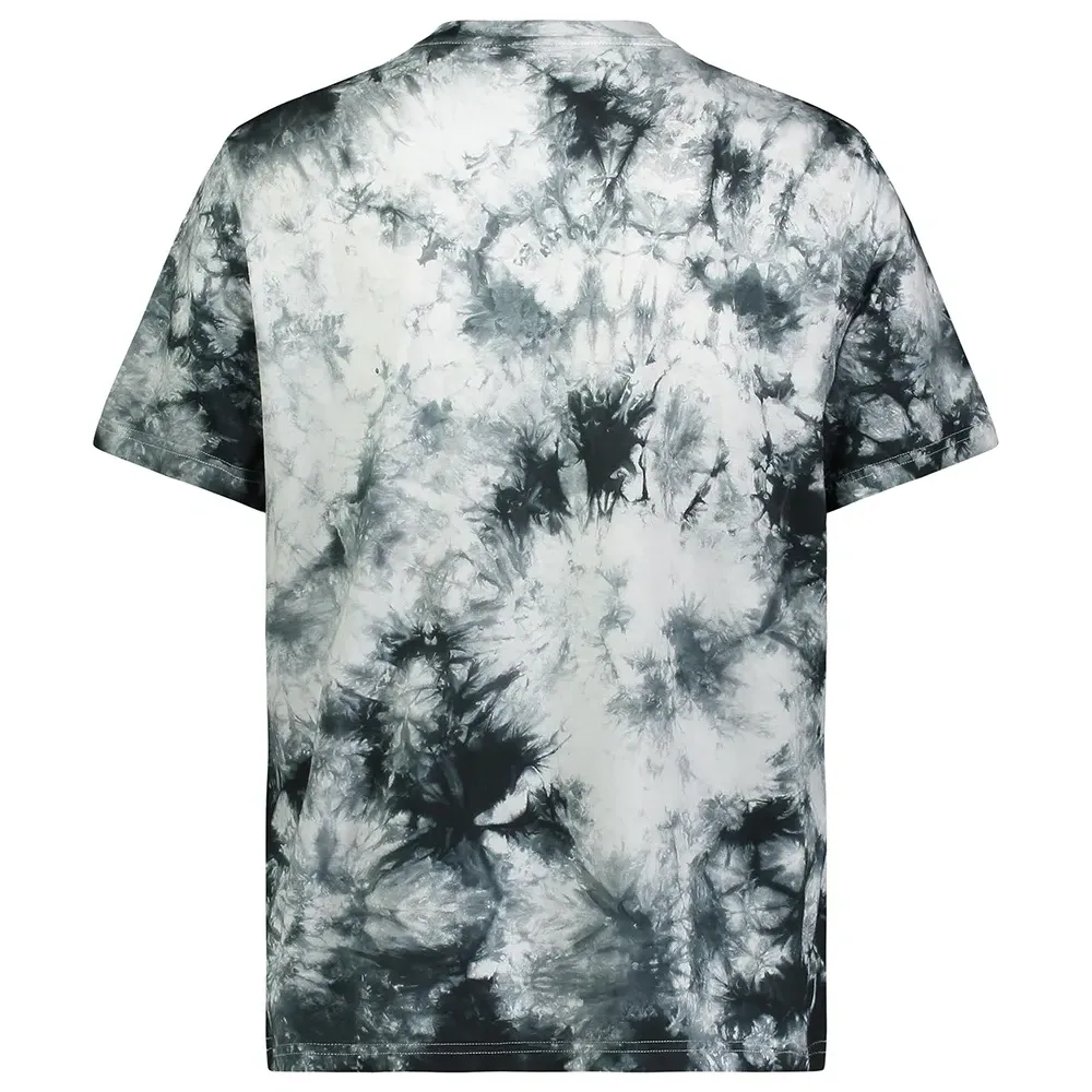 Принт тай-дай, графичный принт, круглый вырез и короткие рукава.