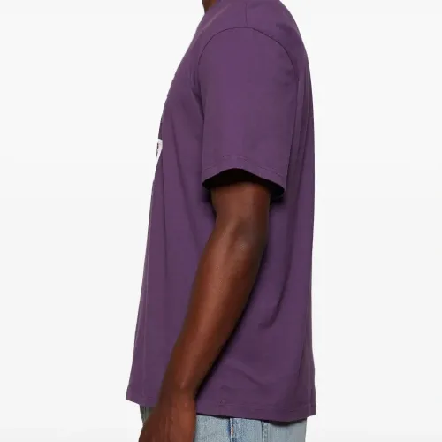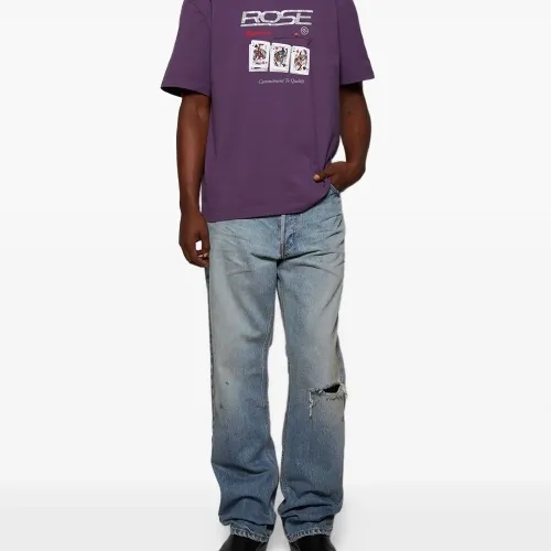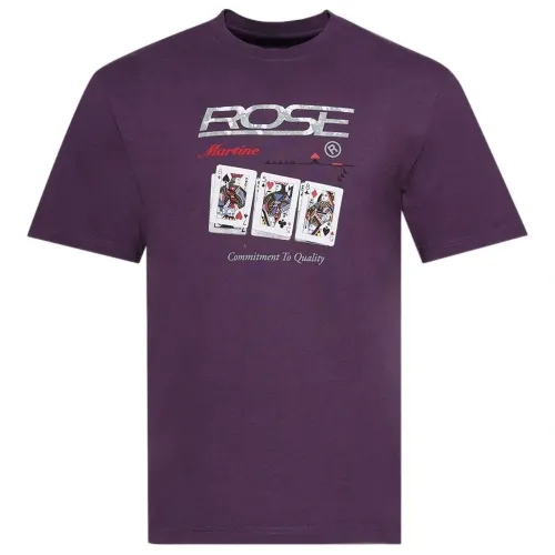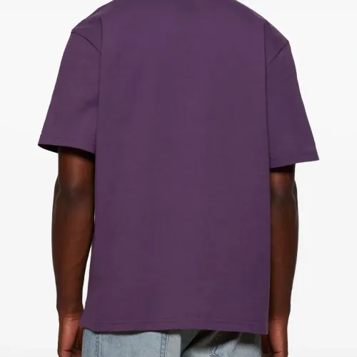 пурпурная футболка с принтом в виде вина, круглым вырезом, короткими рукавами и прямым низом