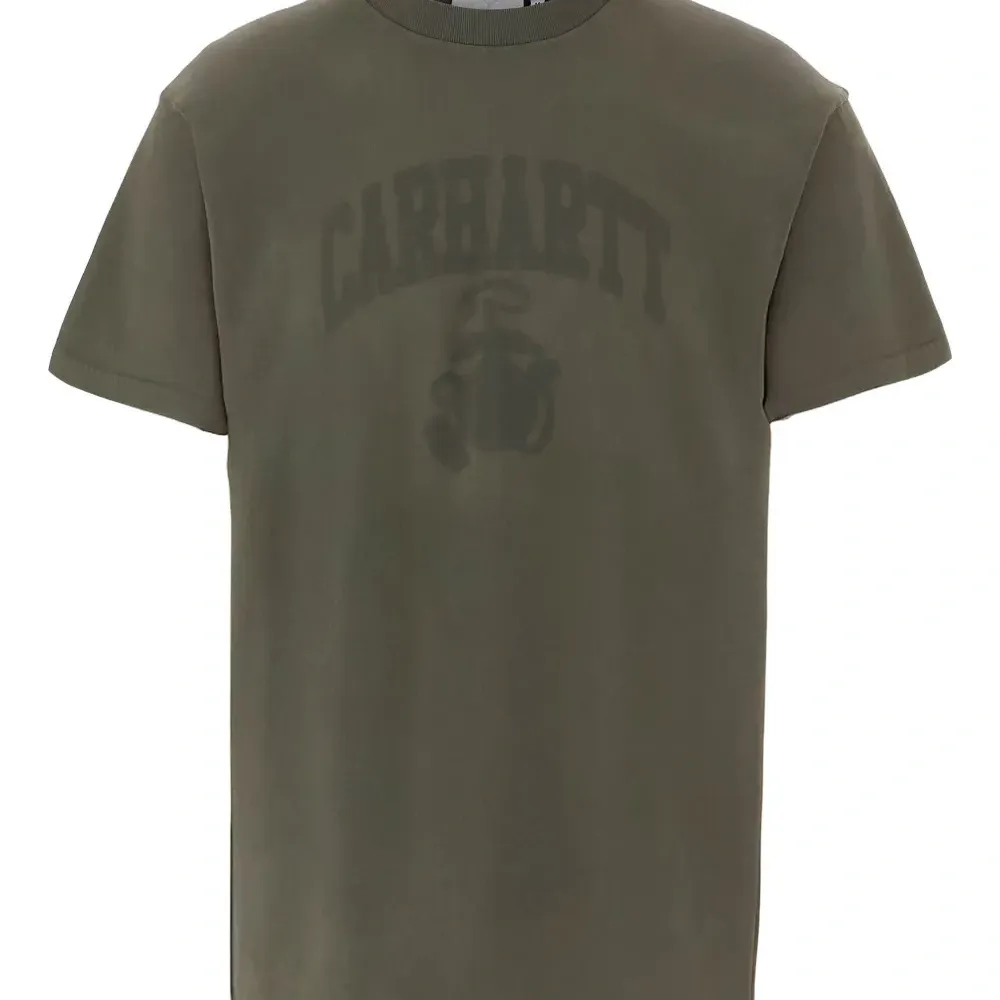 зелёная футболка с круглым вырезом, короткими рукавами и принтом-логотипом