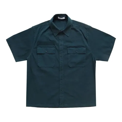 зелёный смесь хлопка короткие рукава два нагрудных кармана застёжка на пуговицы спереди