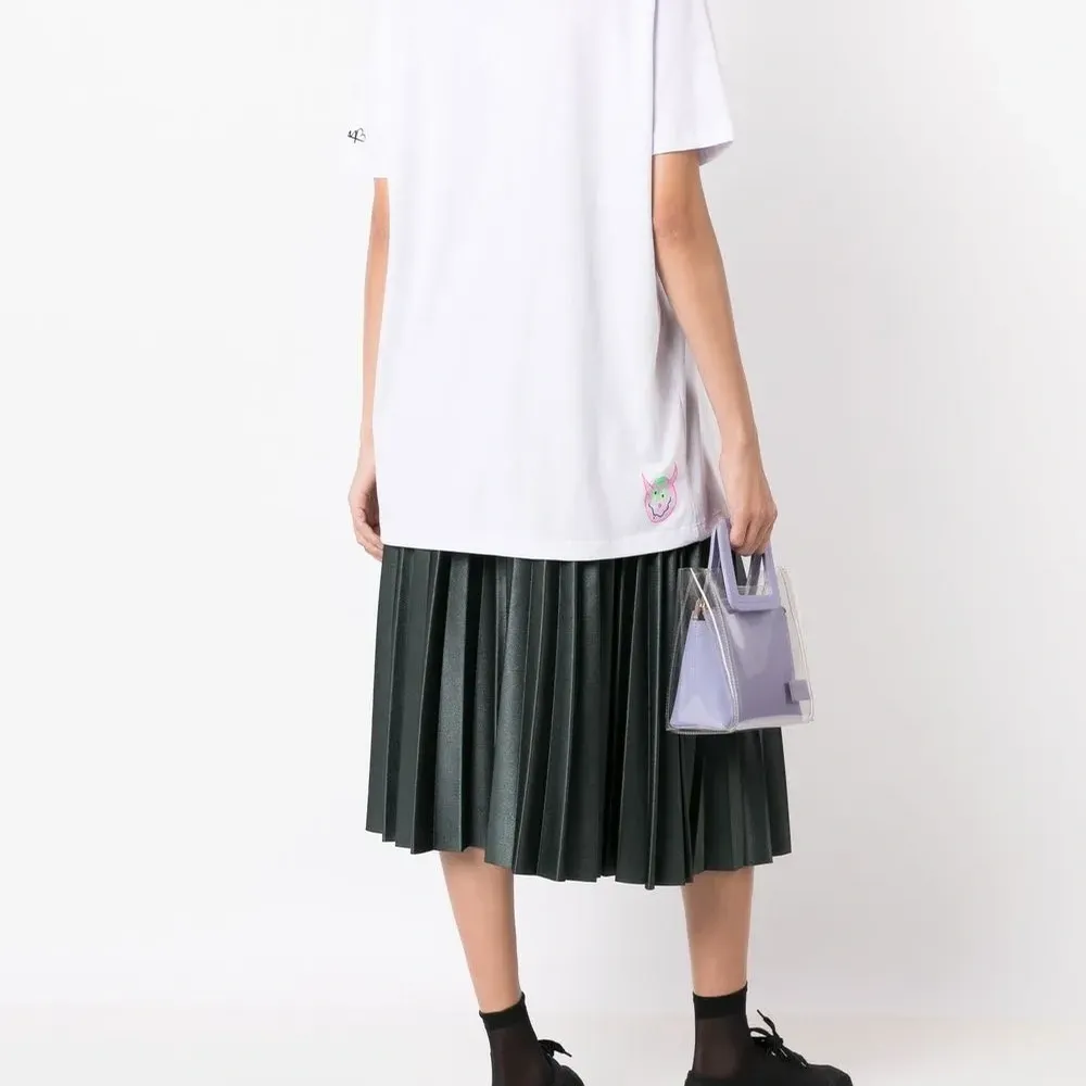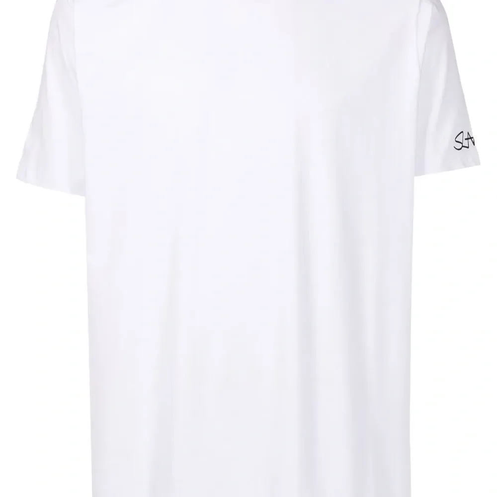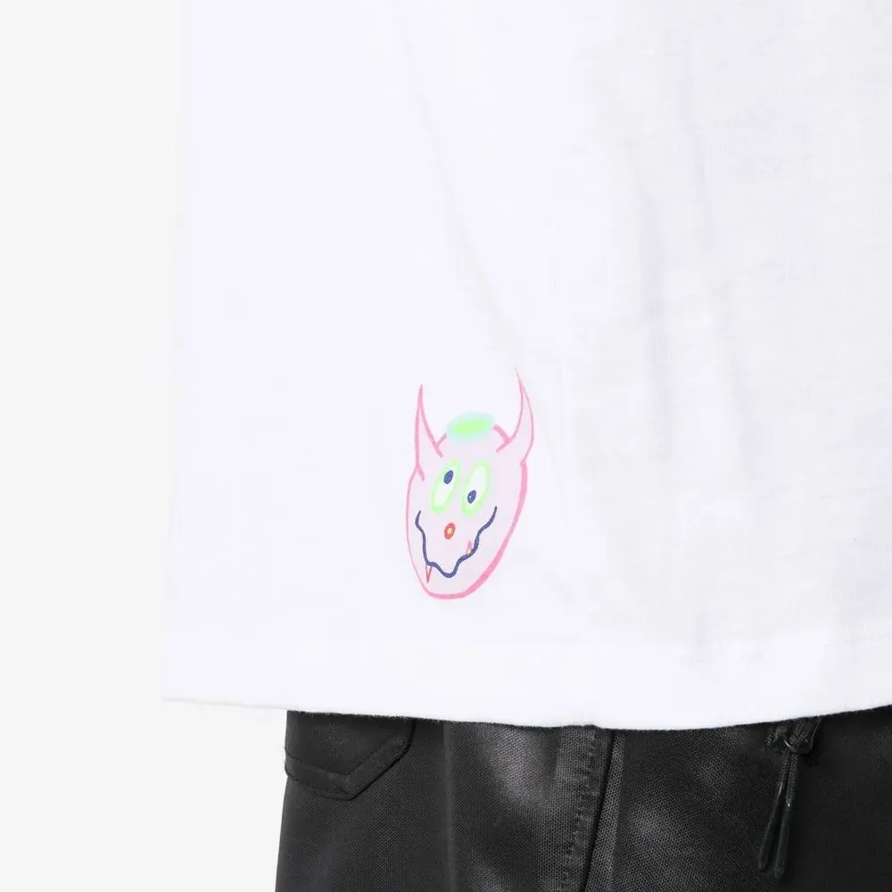 Белый/разноцветный, хлопок, ткань джерси, принт с логотипом на рукаве, графичный принт на спине, круглый вырез, короткие рукава и прямой подол. Это унисекс-модель. Обратите внимание, что для нее используется мужская размерная сетка.