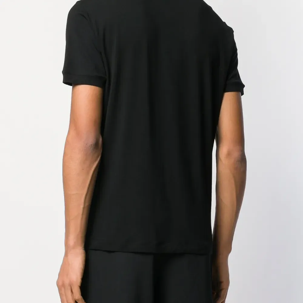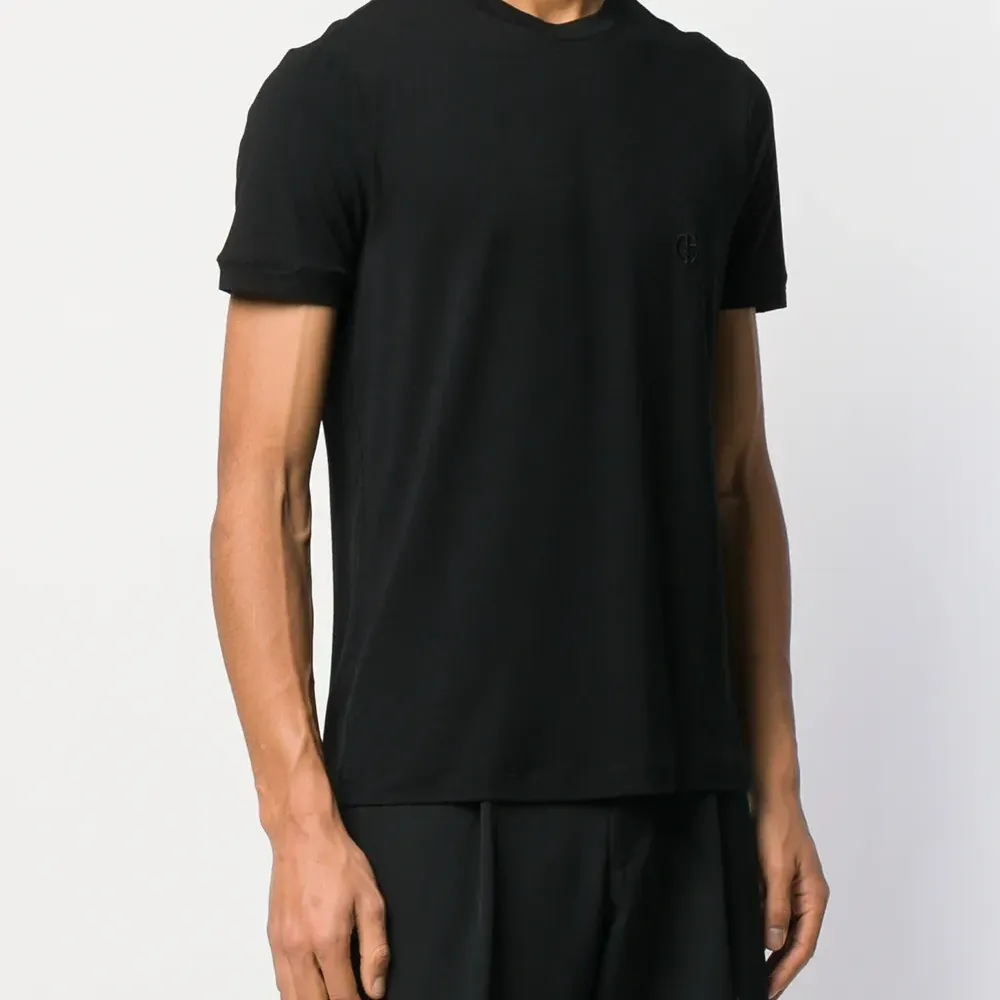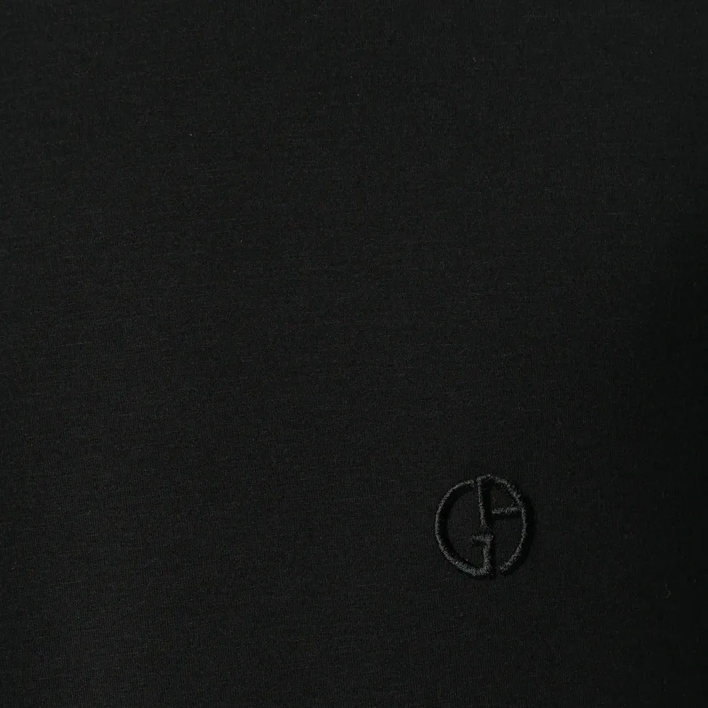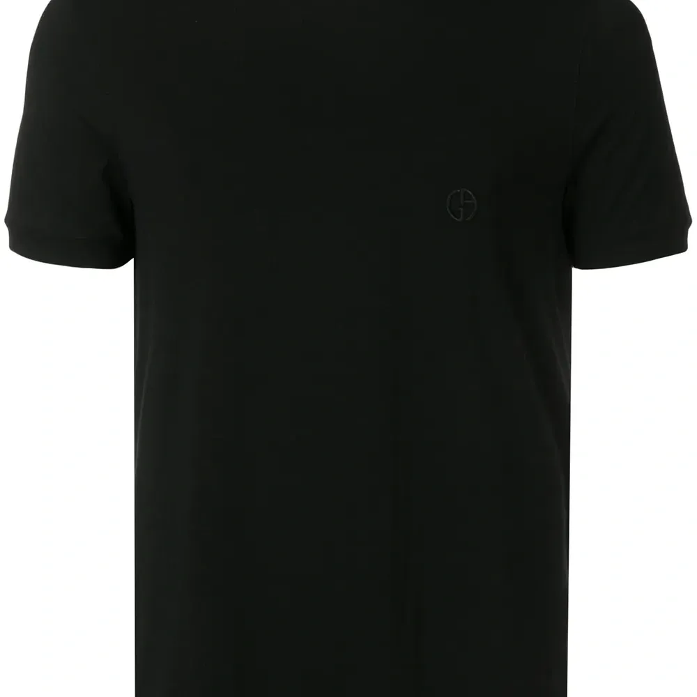 Футболка кроя слим от Giorgio Armani (Джорджо Армани). Круглый вырез с окантовкой, вышитый логотип на груди, прямой подол, короткие рукава и внутренняя вставка с логотипом.