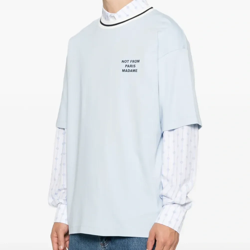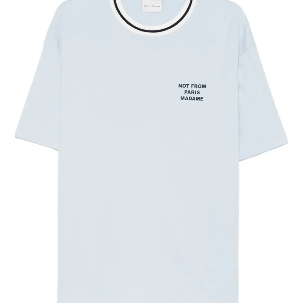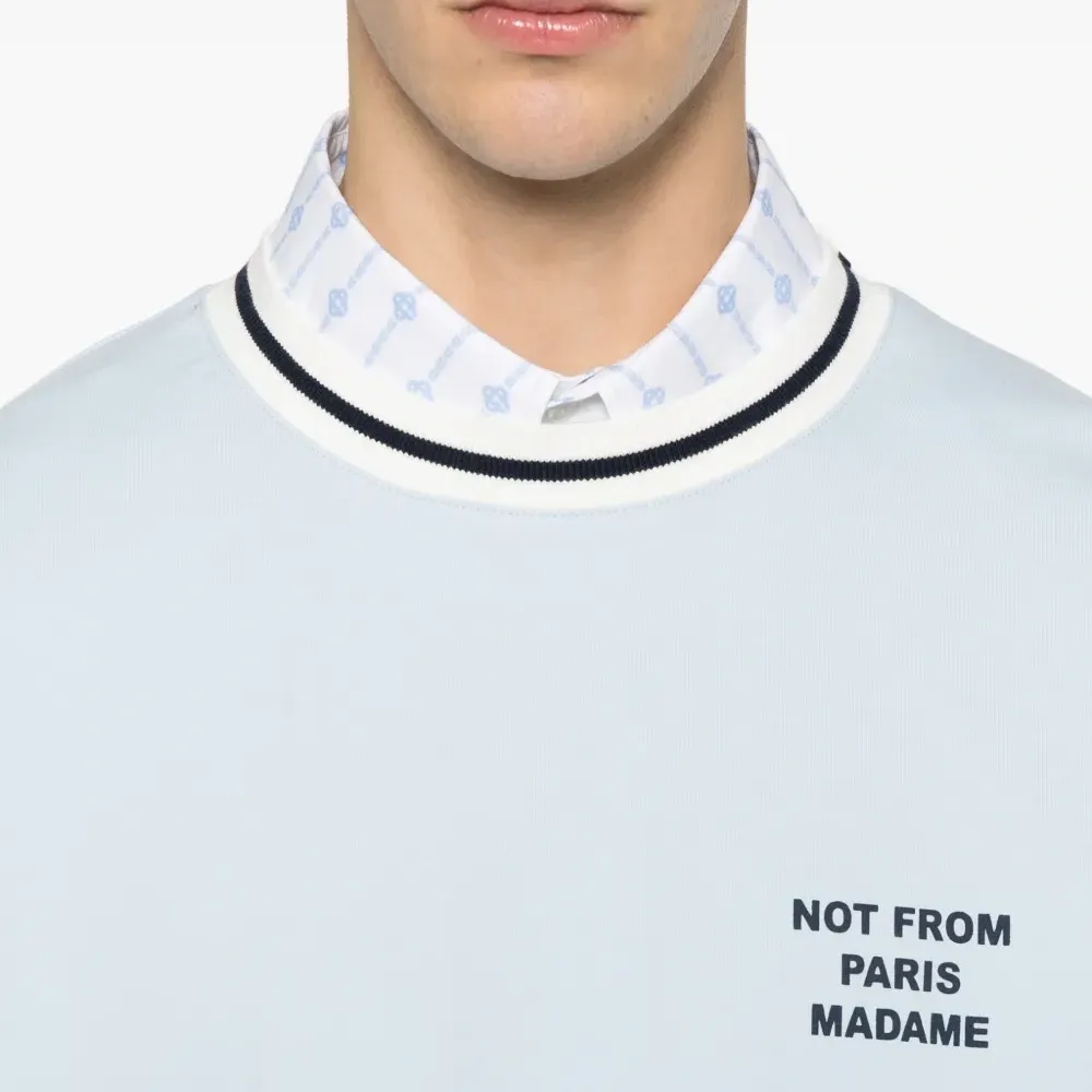 голубой воротник с контрастной отделкой текстовый принт короткие рукава круглый вырез