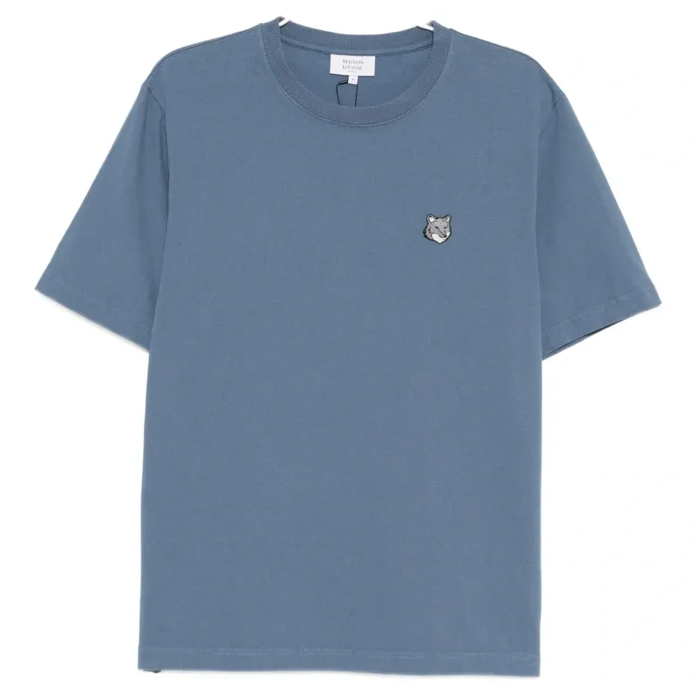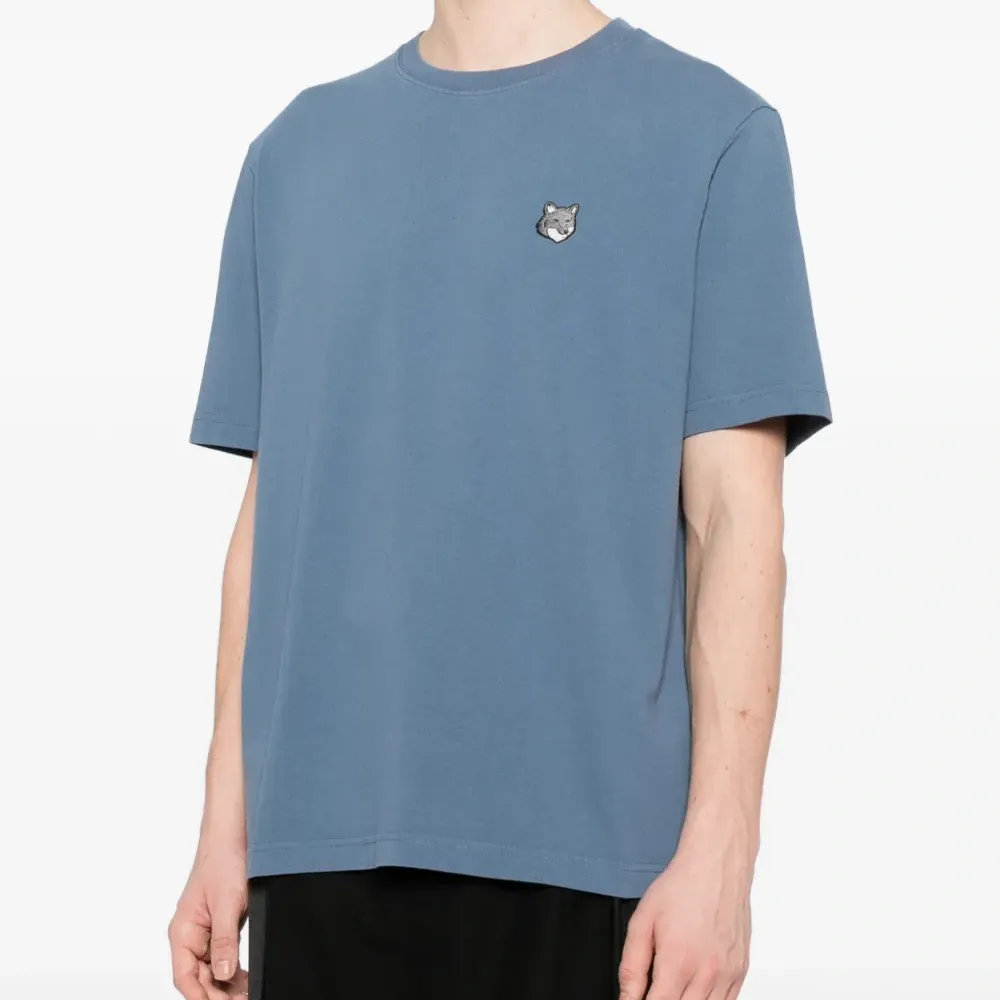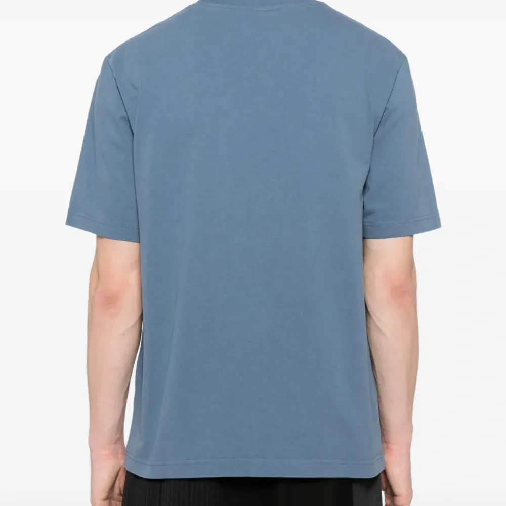 синий цвет Seine, нашивка с логотипом спереди, круглый вырез, короткие рукава