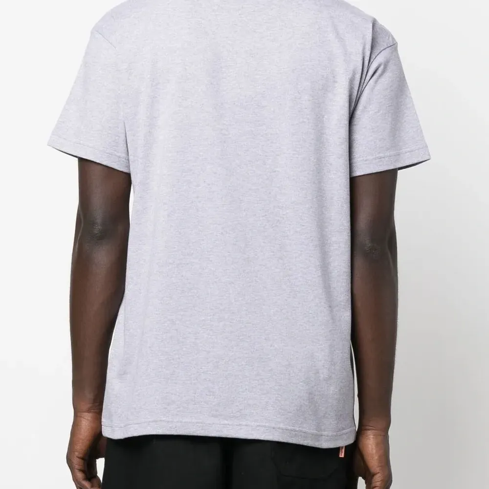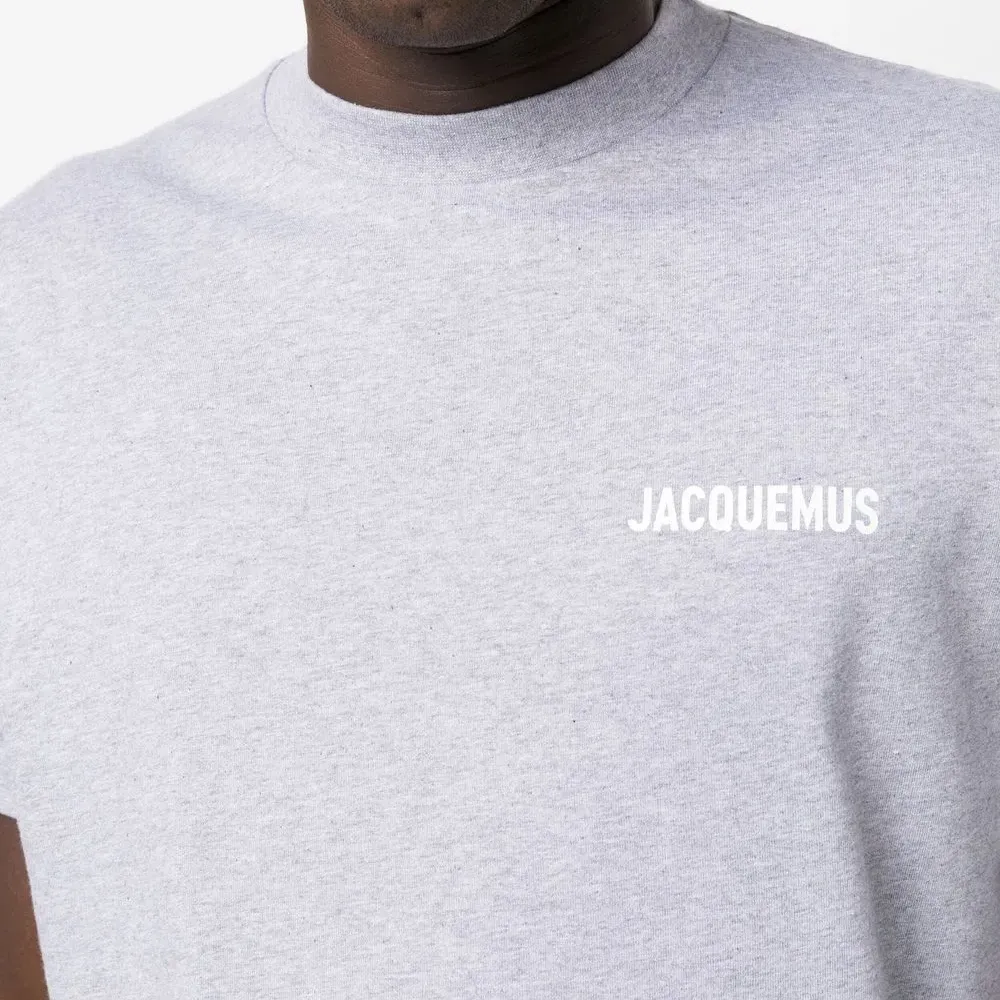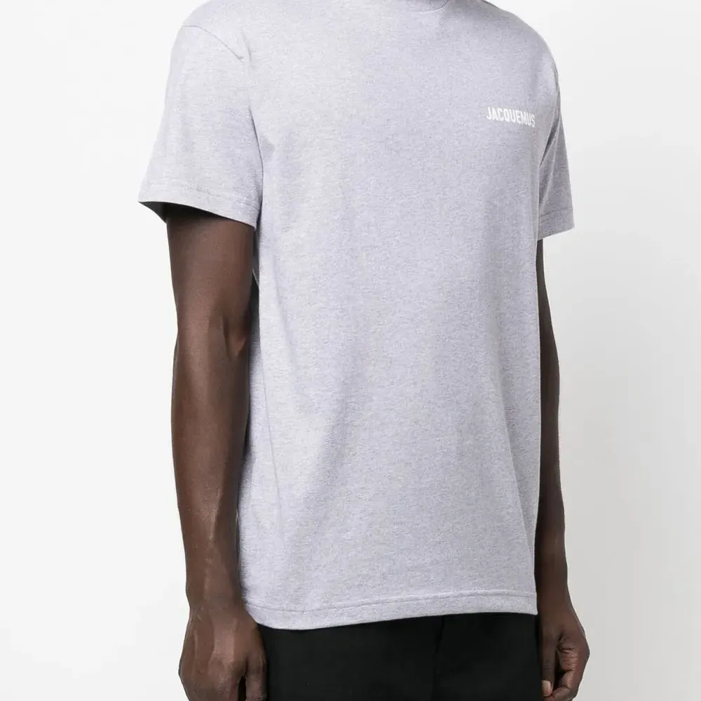 Светло-серый, ткань джерси, органический хлопок, принт с логотипом на груди, круглый вырез, короткие рукава и прямой подол.