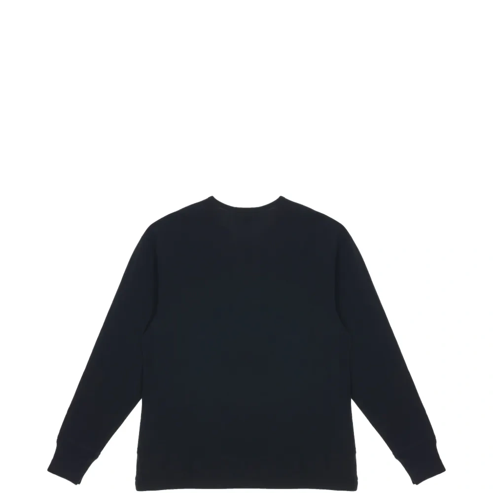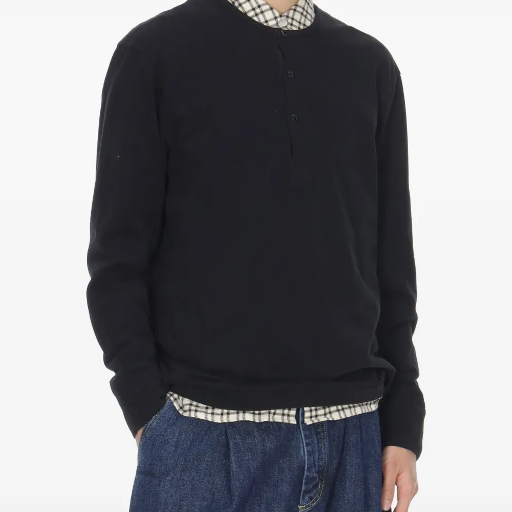 черная футболка из джерси с круглым вырезом, застежкой на пуговицы, длинными рукавами и ребристыми манжетами