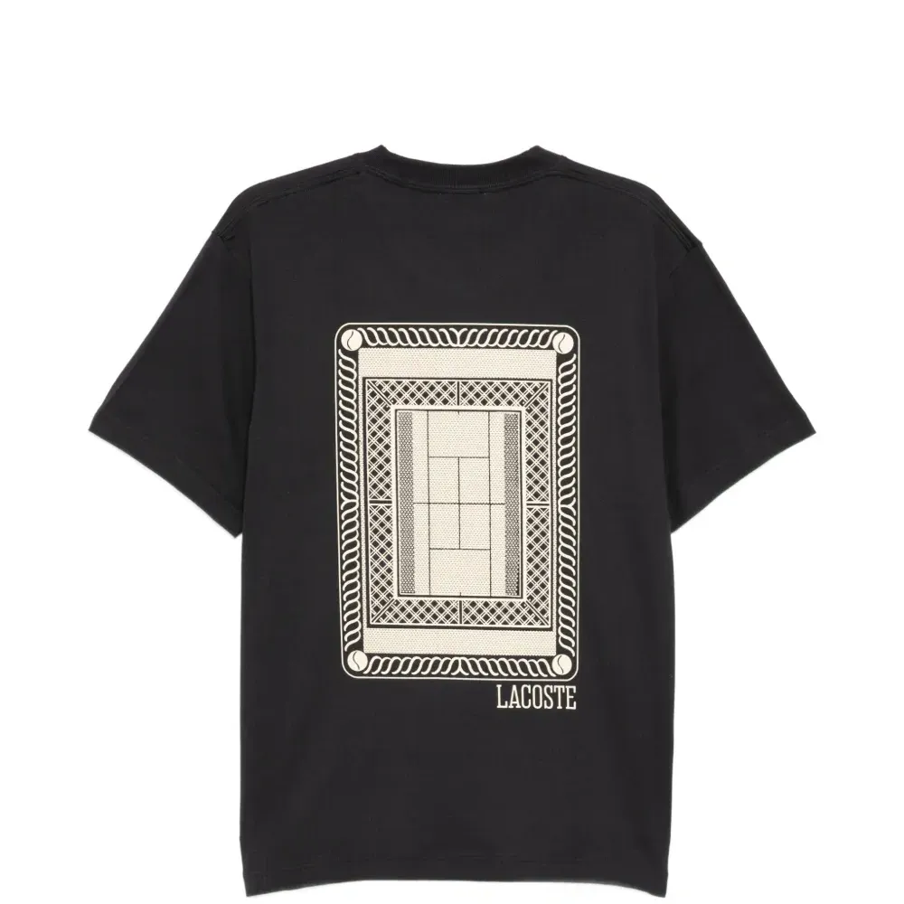 черный с графическим принтом на спине, круглый вырез, короткие рукава