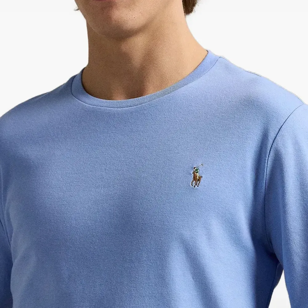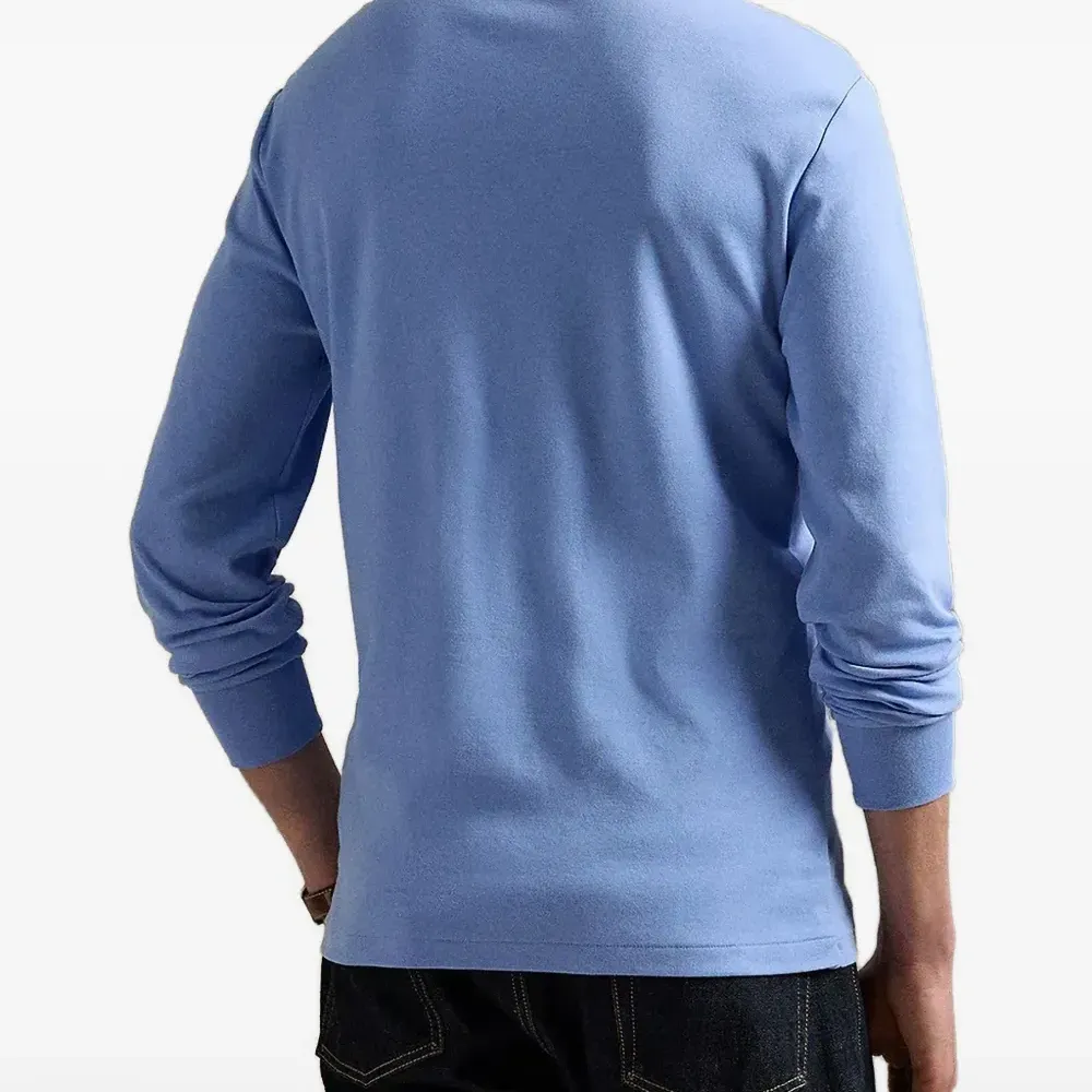 синий джемпер с круглым вырезом, длинными рукавами и вышитым логотипом