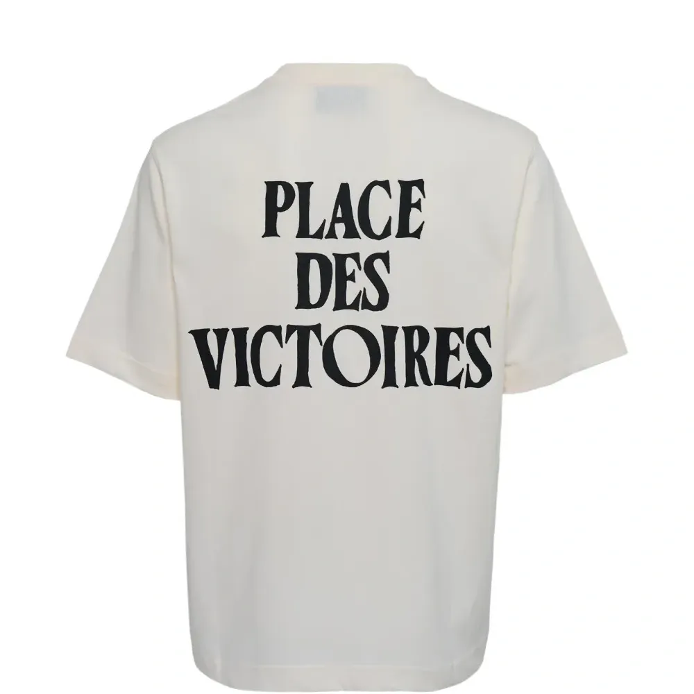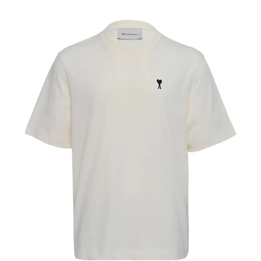 белая футболка с короткими рукавами, круглым вырезом, фирменным логотипом Ami de Coeur и прямым нижним краем