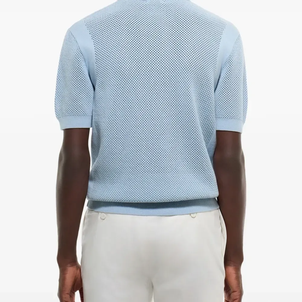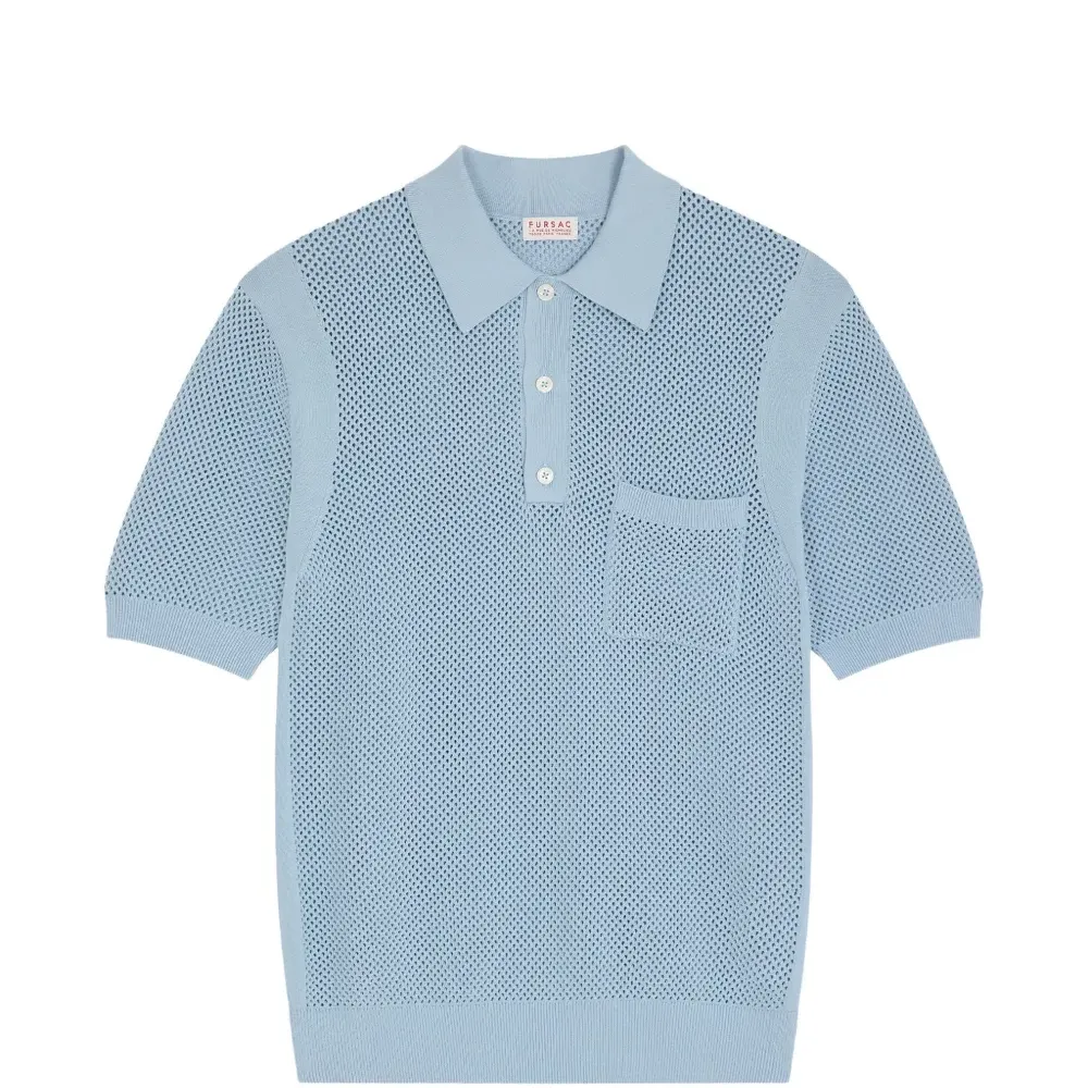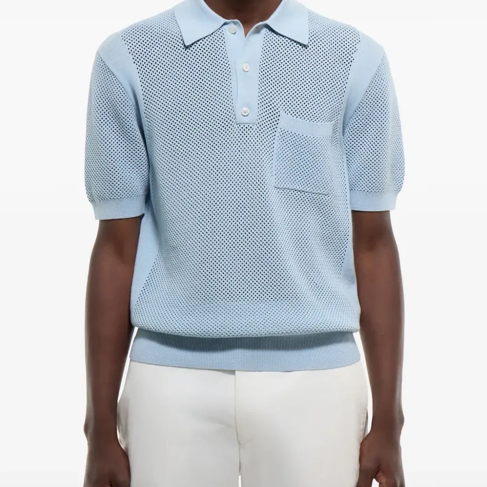 синий короткий рукав, нагрудный карман, застежка на пуговицы спереди