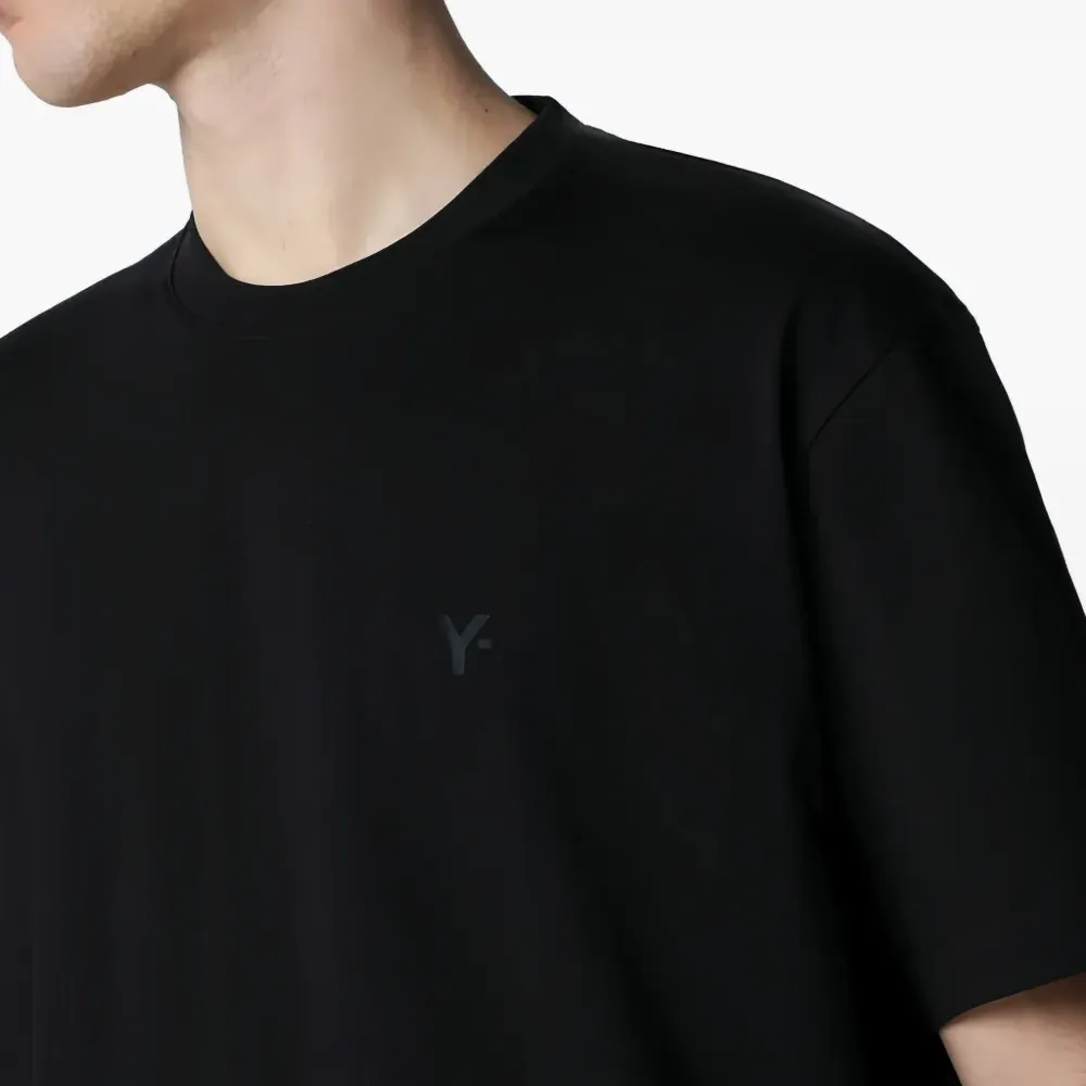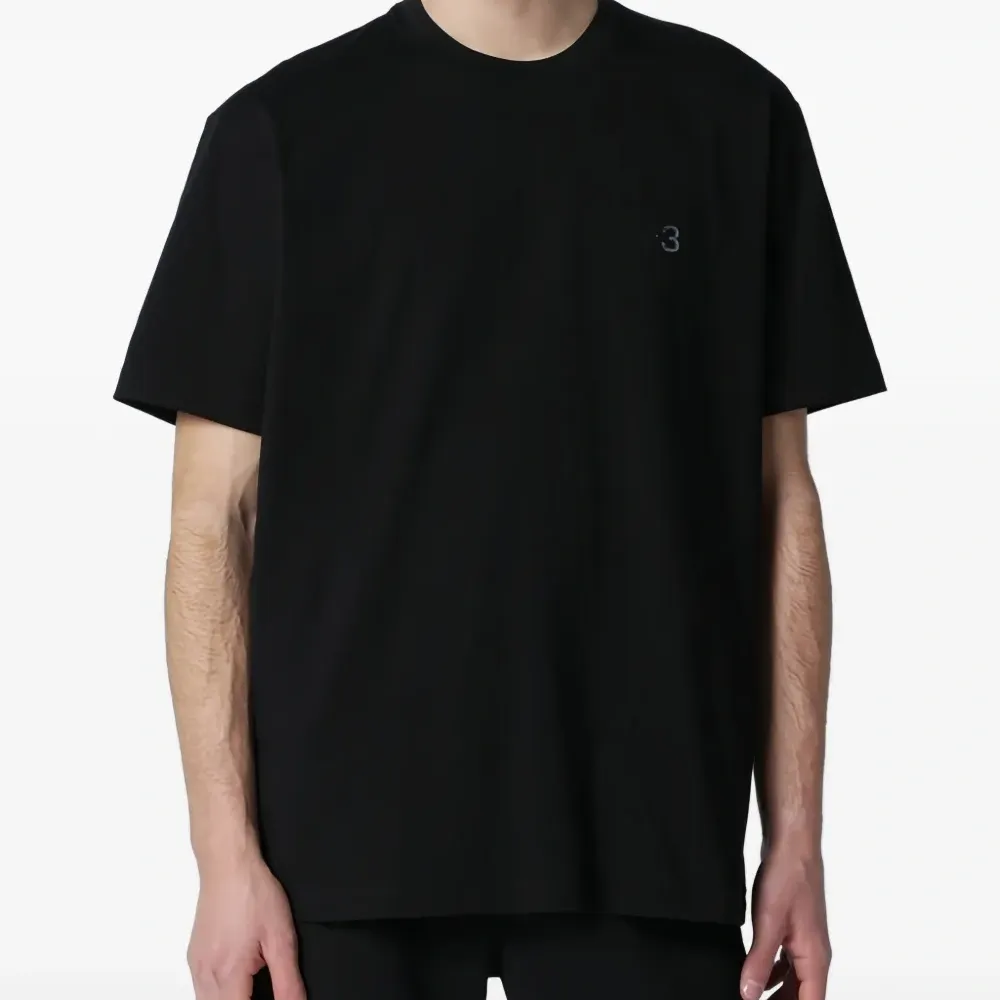 черная футболка с тоном логотипа, круглый вырез, короткие рукава