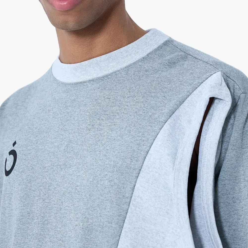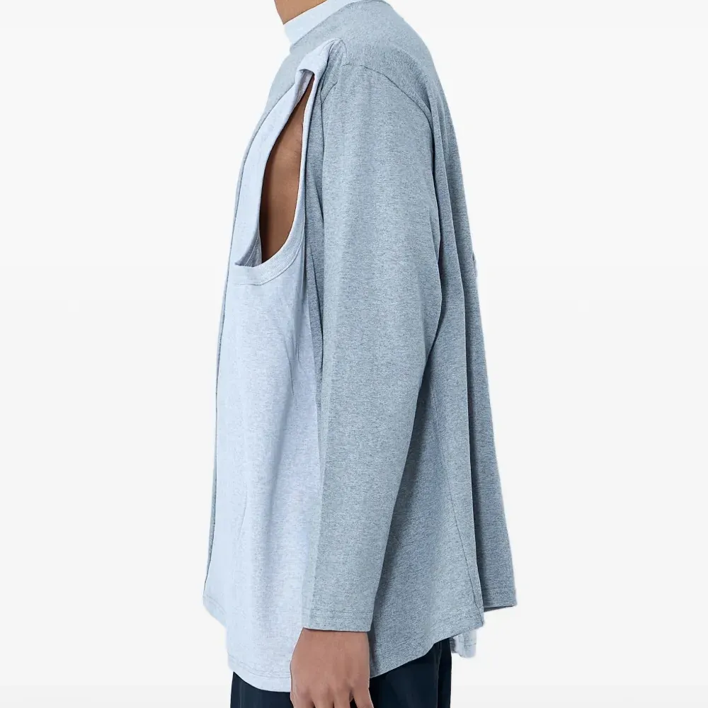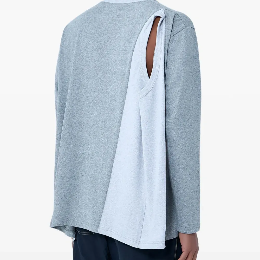 серая толстовка с круглым вырезом, длинными рукавами и асимметричными вставками