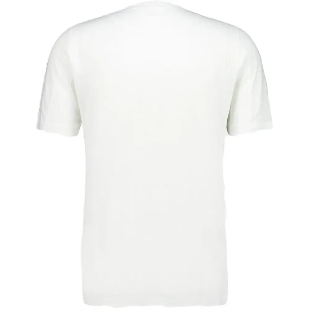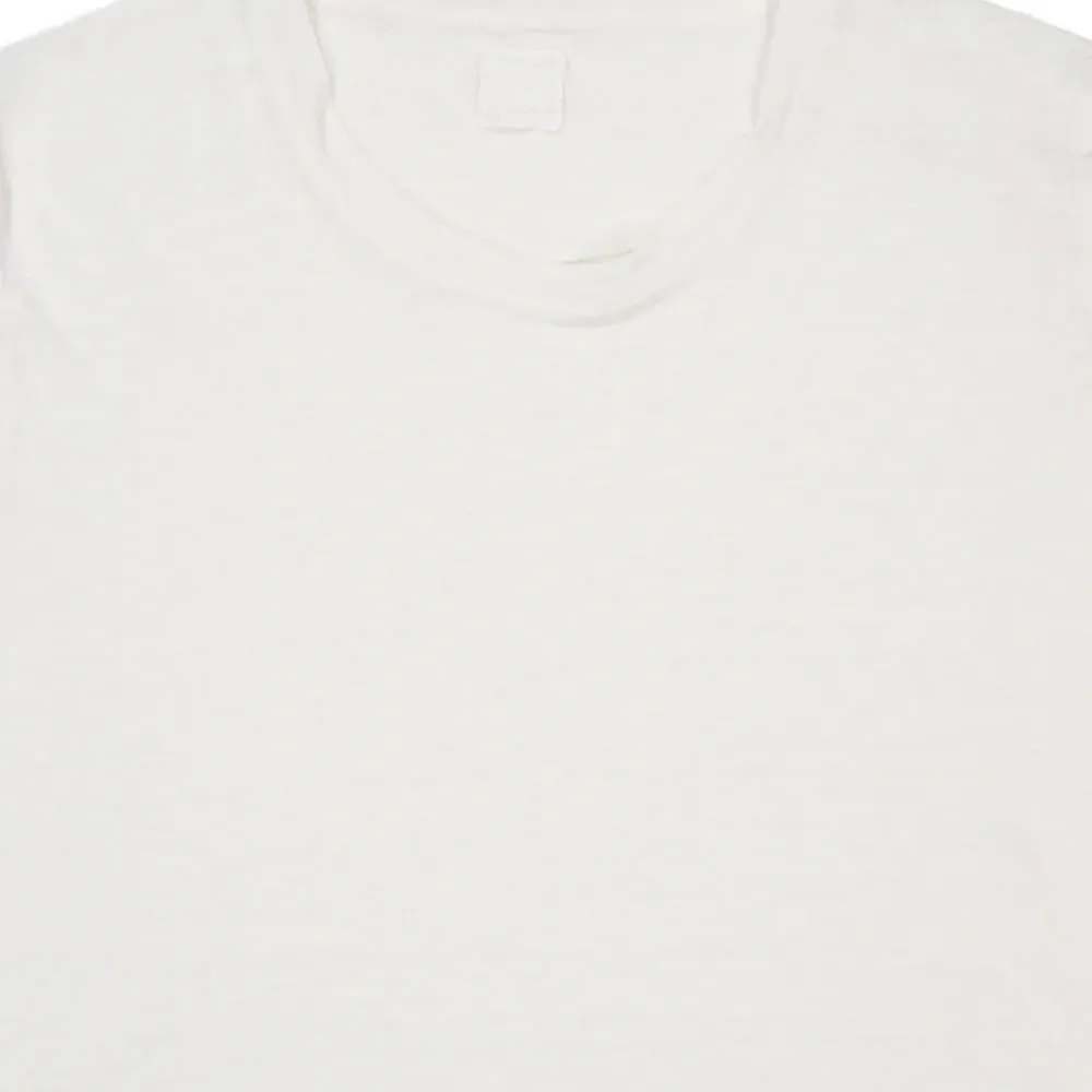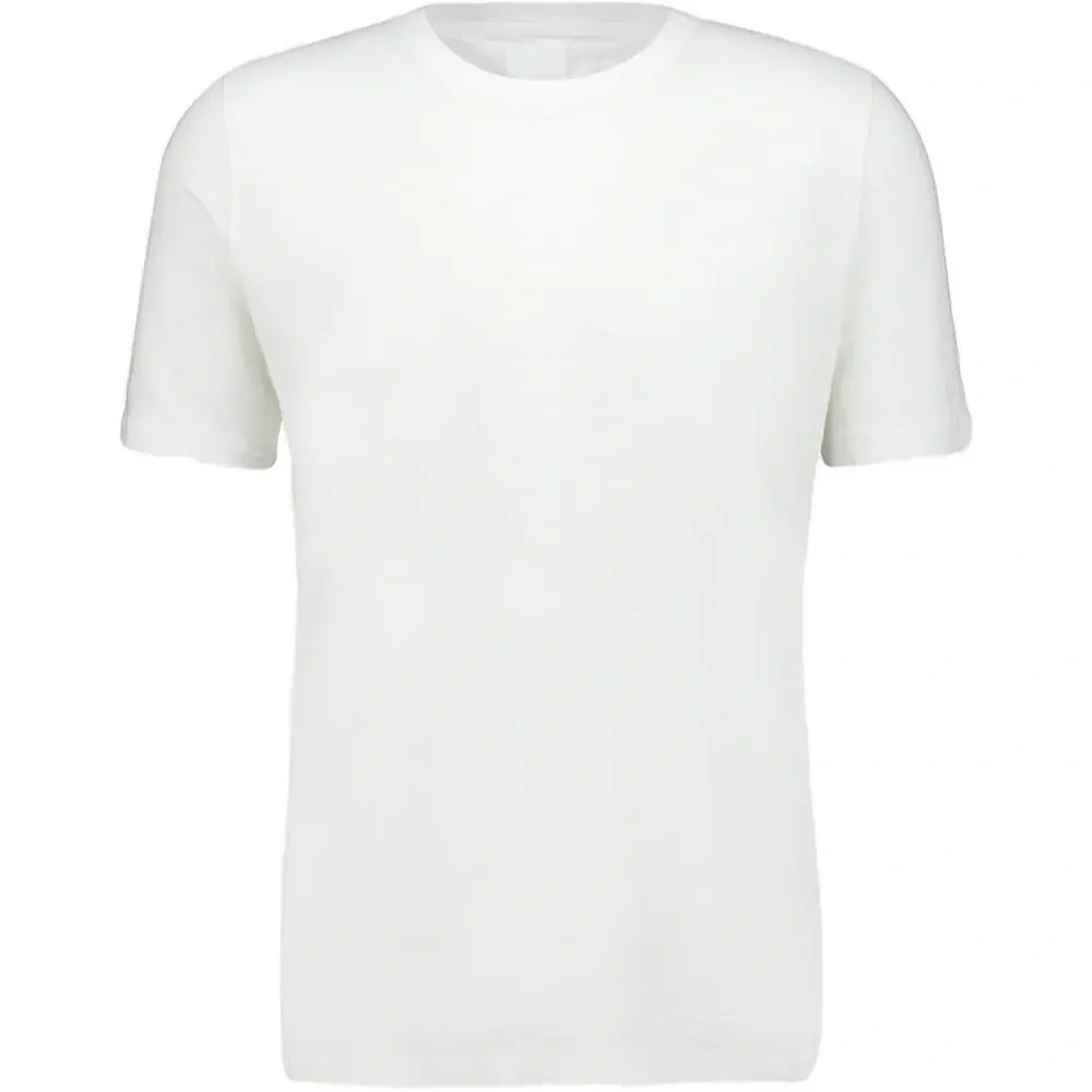 белая льняная футболка с короткими рукавами и круглым вырезом