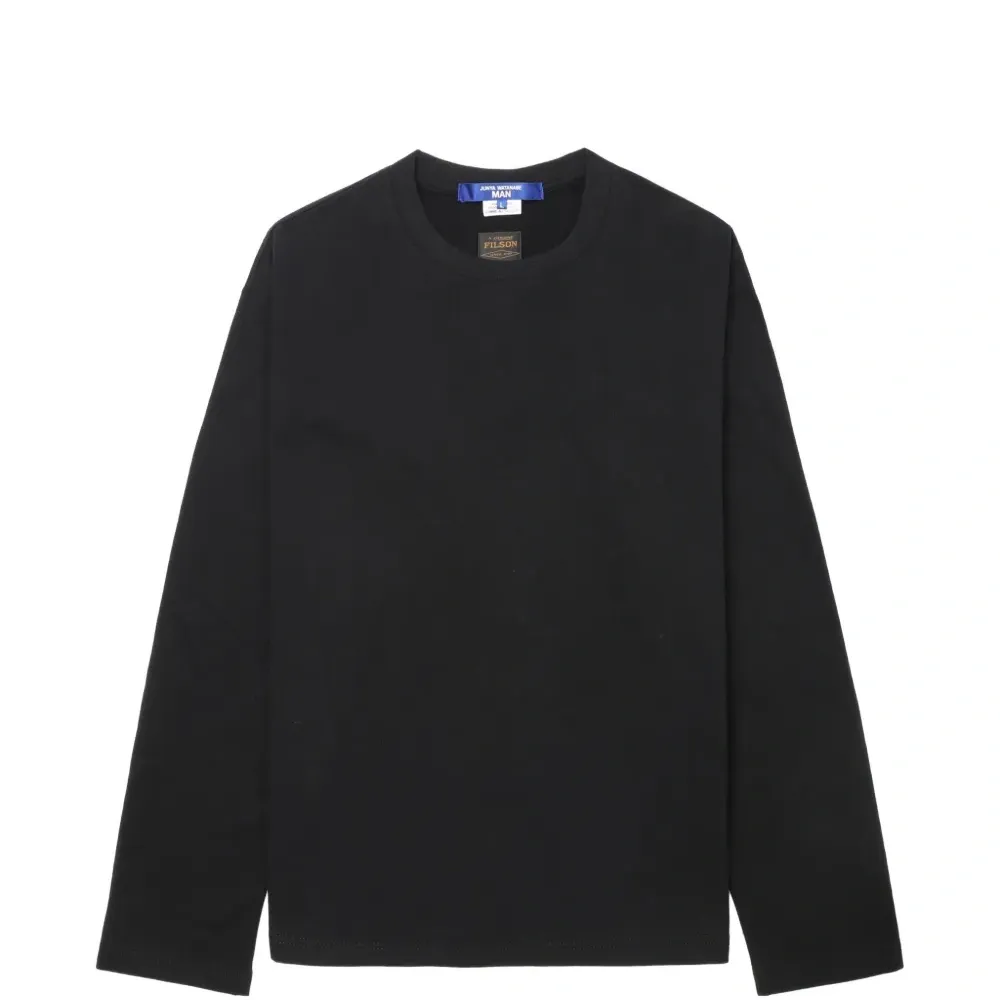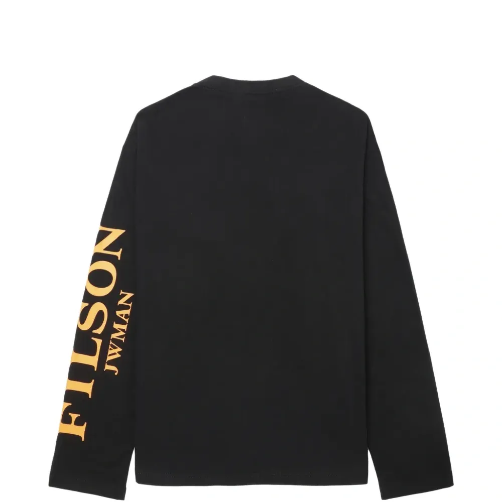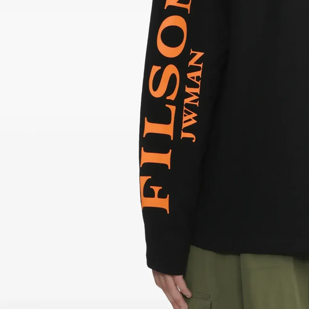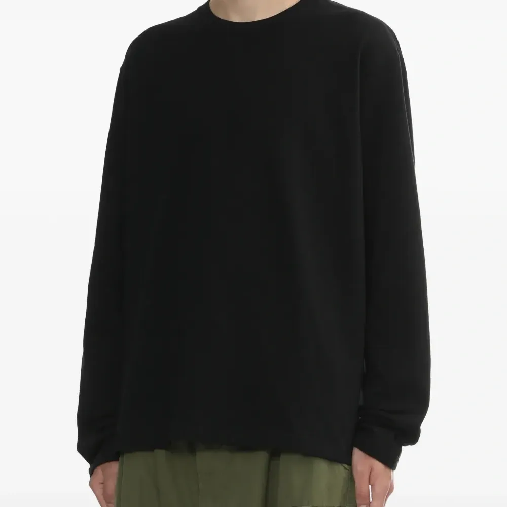 черная свободная футболка с длинными рукавами, круглым вырезом и принтом-логотипом