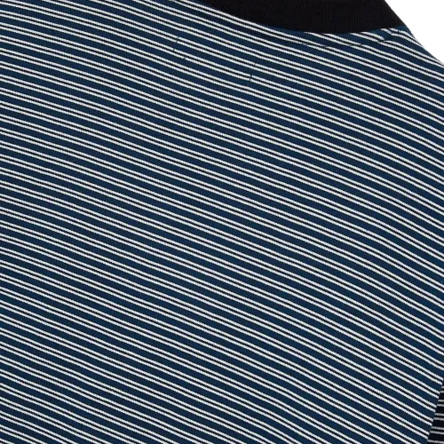 темно-зеленый свитер в полоску с круглым вырезом и длинными рукавами
