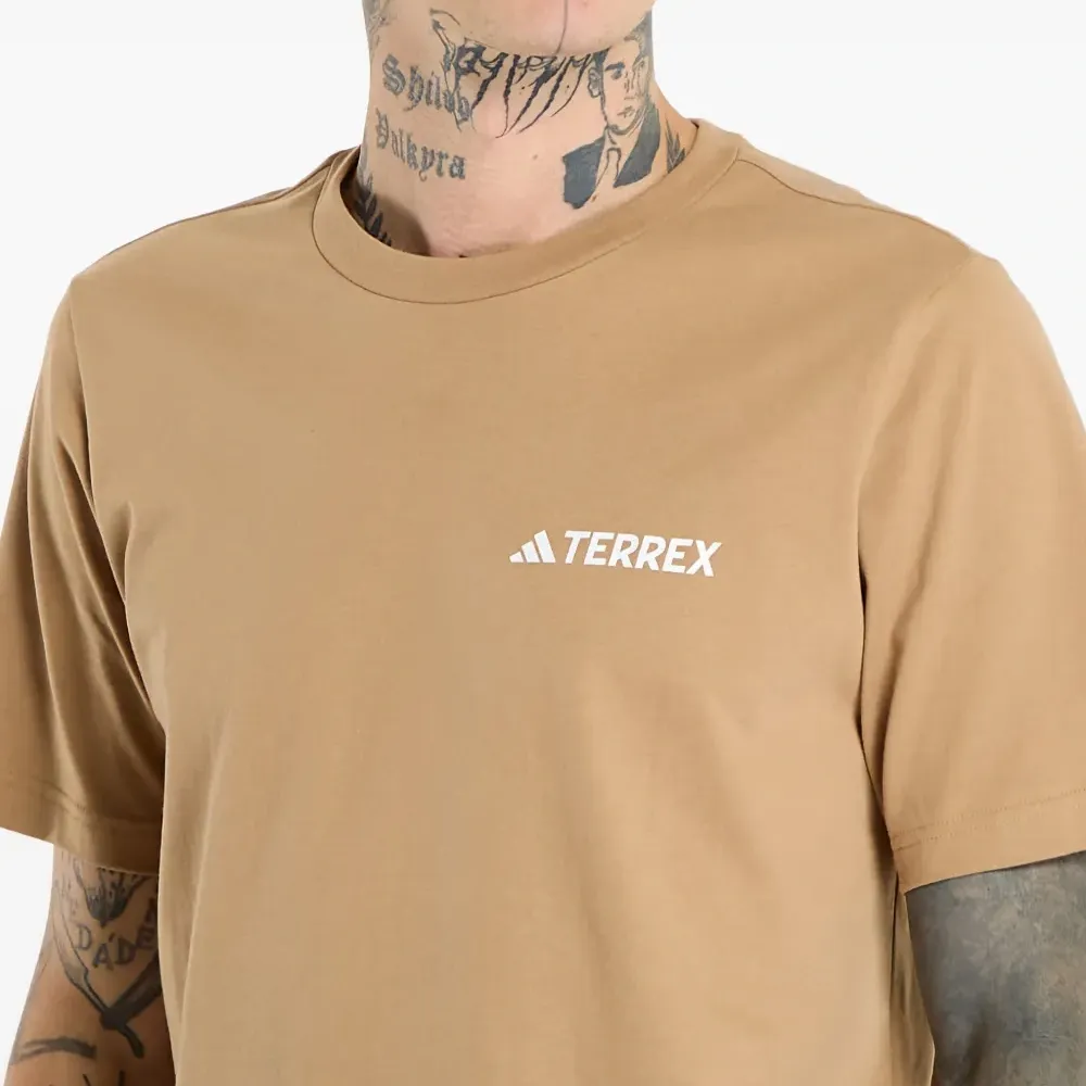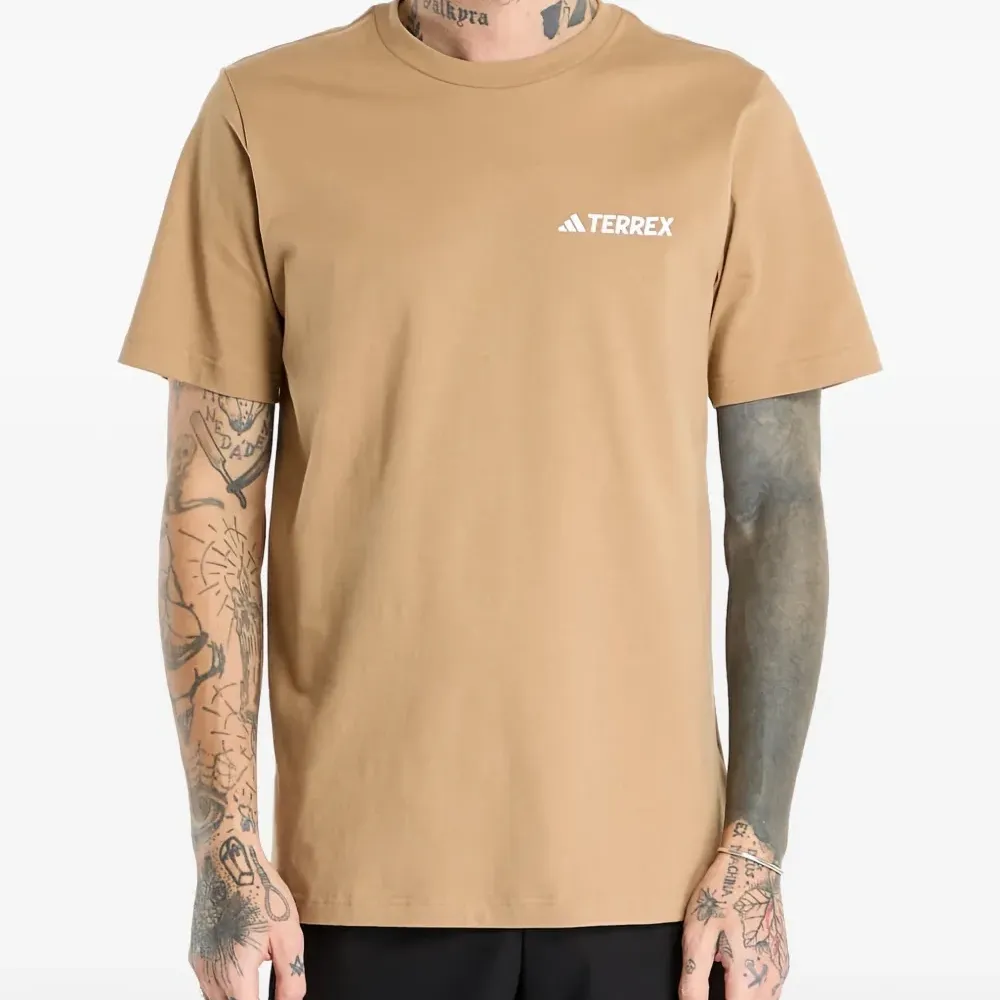 бежевый свитшот с круглым вырезом, короткими рукавами и принтом-логотипом