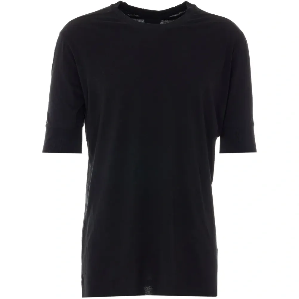 черный свитшот с круглым вырезом, прямым подолом и короткими рукавами
