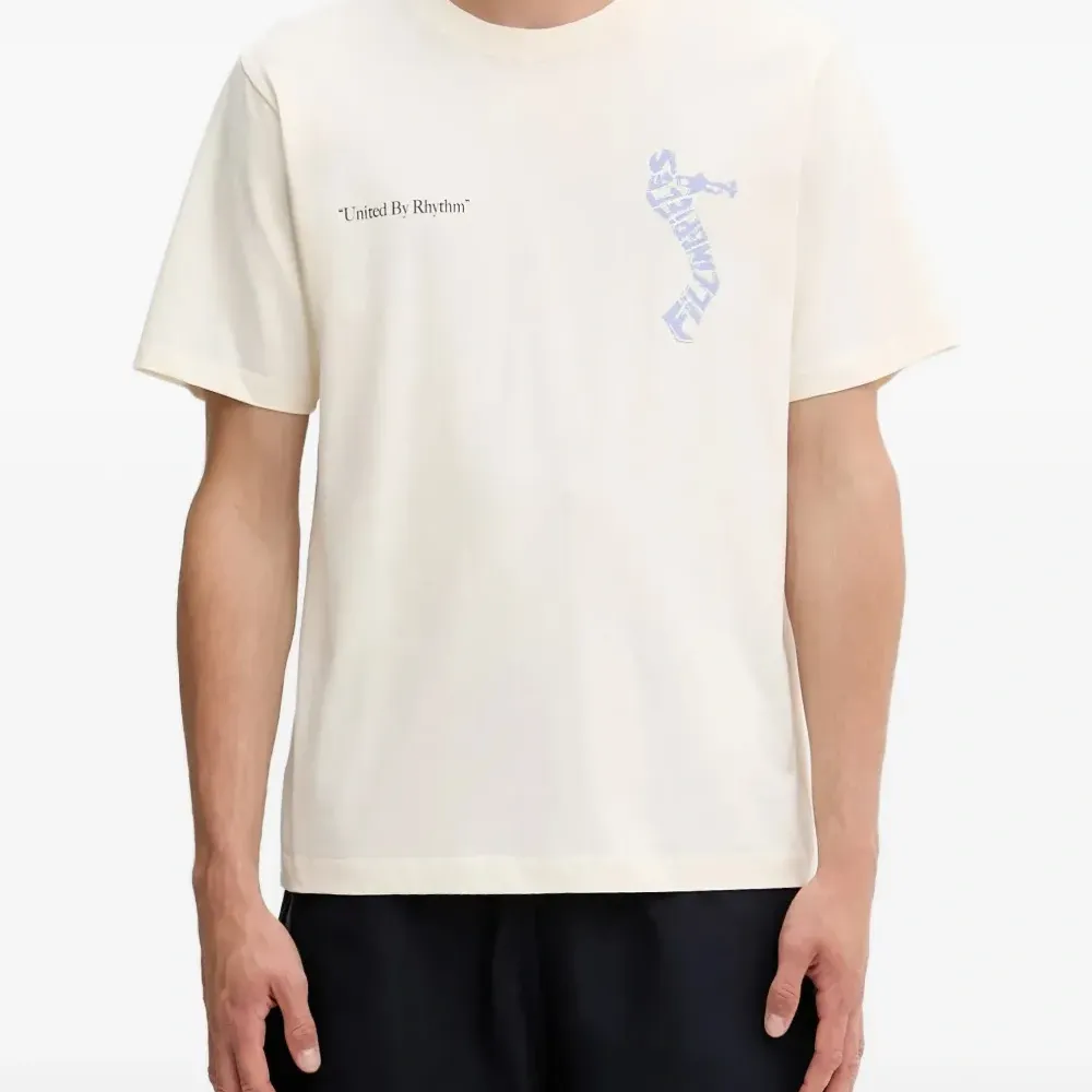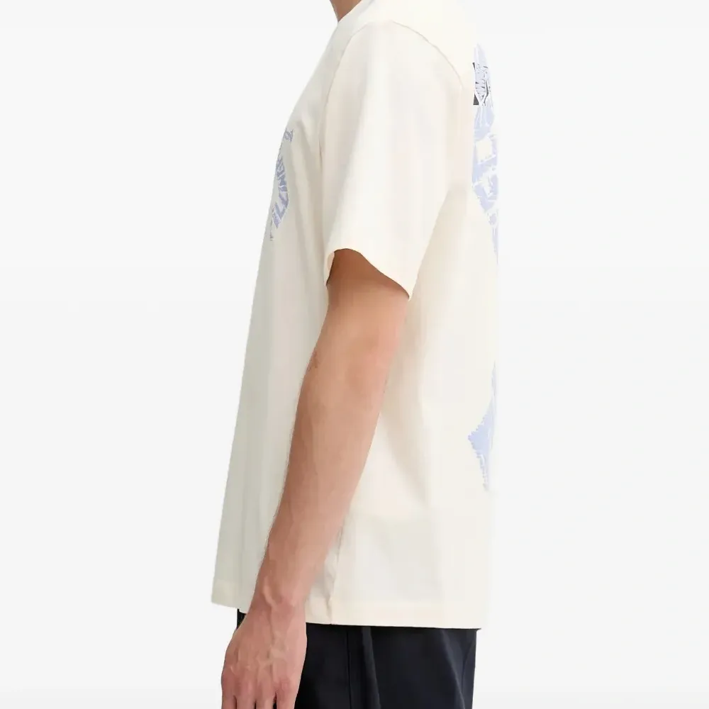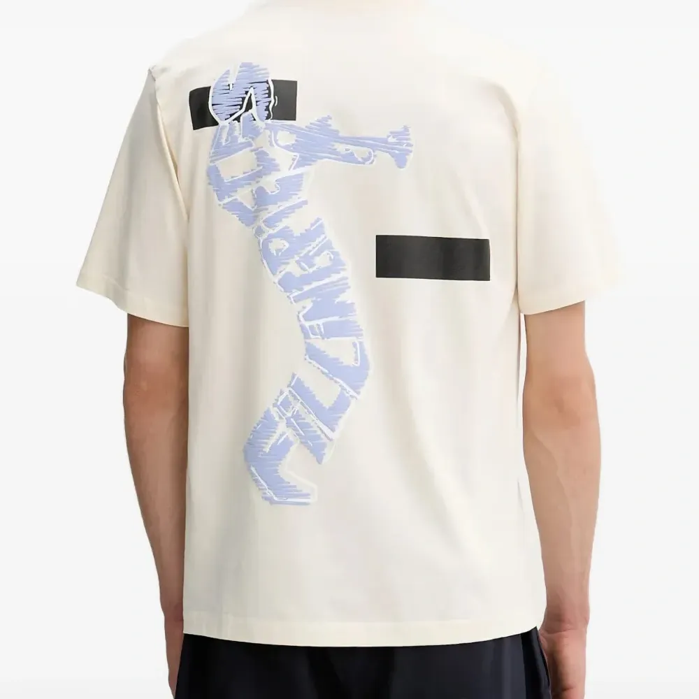 Айвори футболка с графическим принтом, круглым вырезом и короткими рукавами