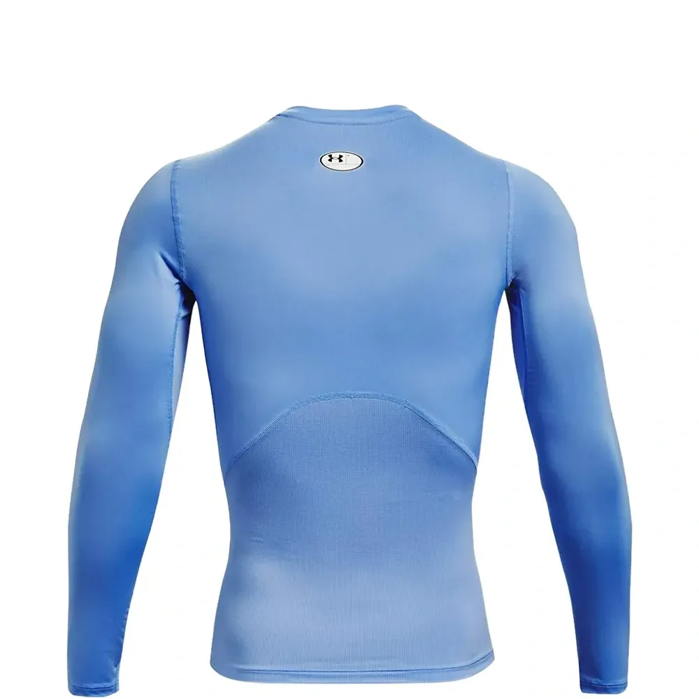 синий лонгслив с круглым вырезом, длинными рукавами, логотипом и компрессионной посадкой