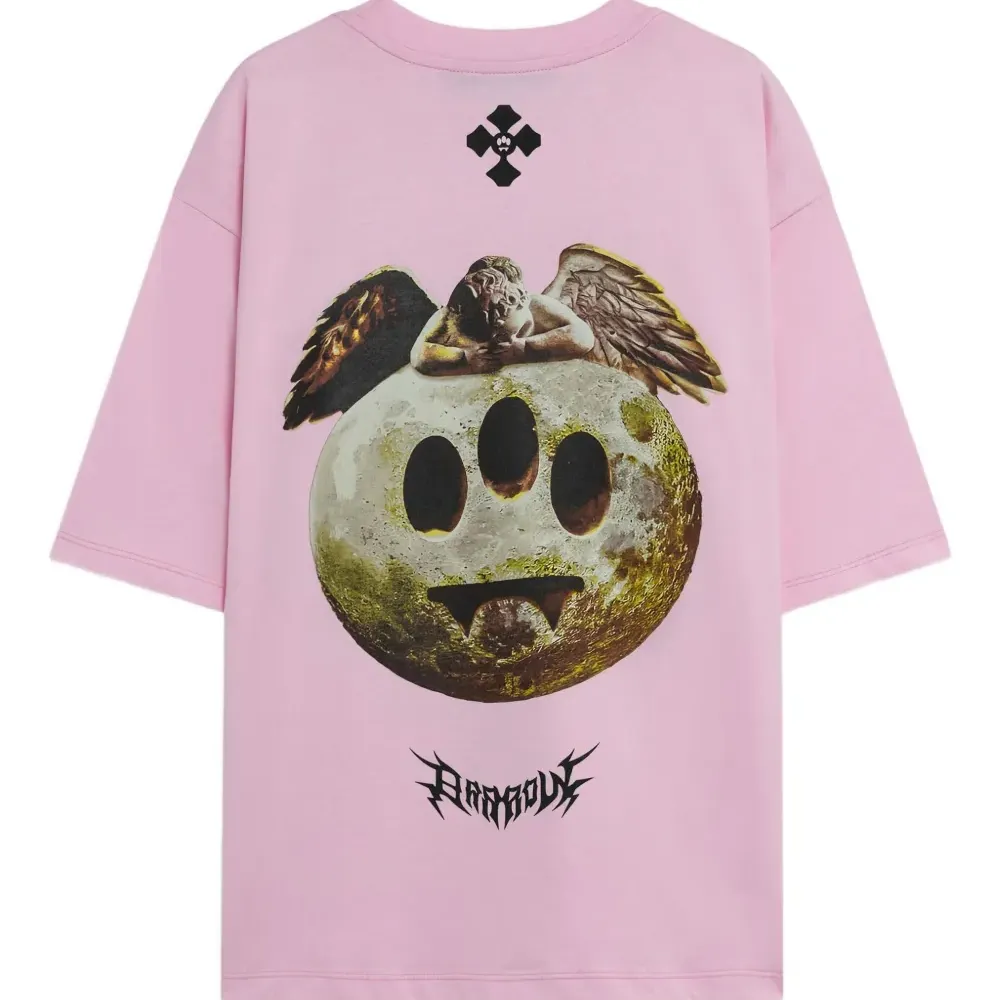 розовый графичный принт короткие рукава круглый вырез
