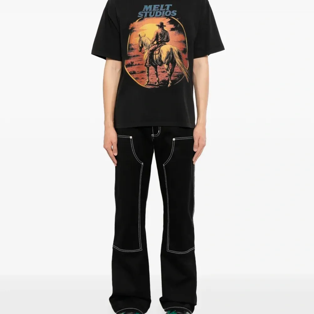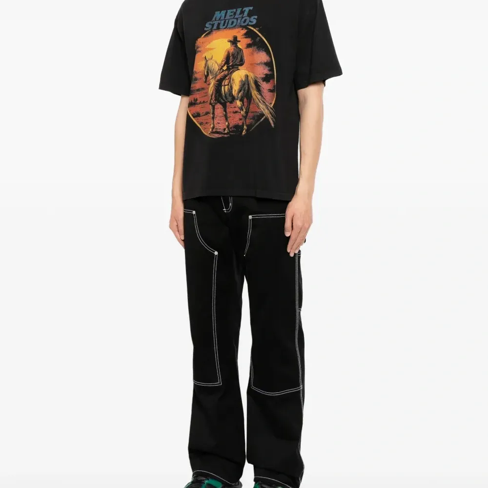 черный, круглый вырез, короткие рукава, принтованный дизайн, 100% хлопок
