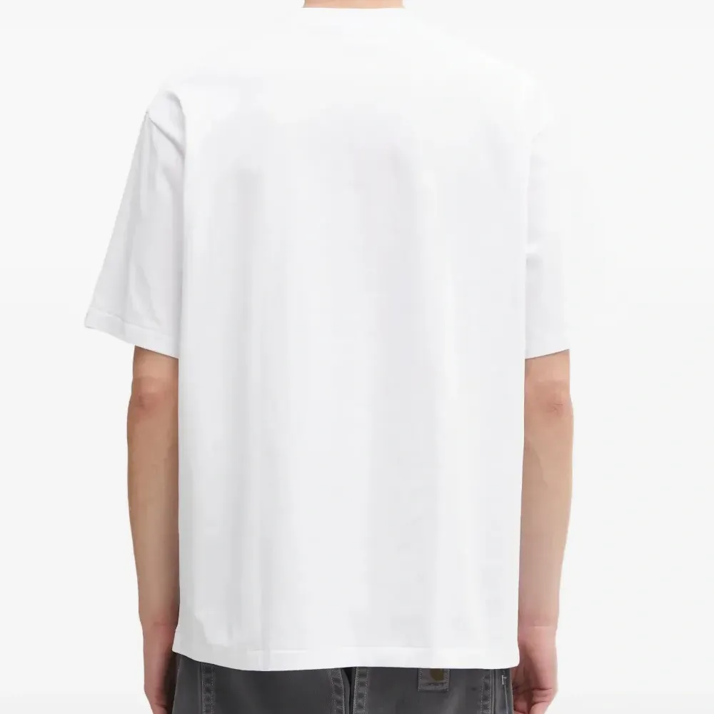 белая футболка с логотипом, круглый вырез, короткие рукава