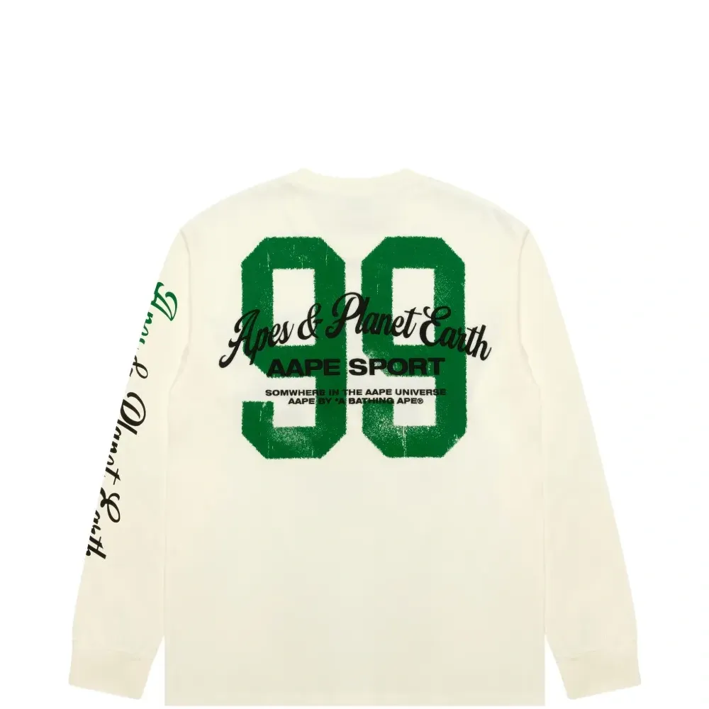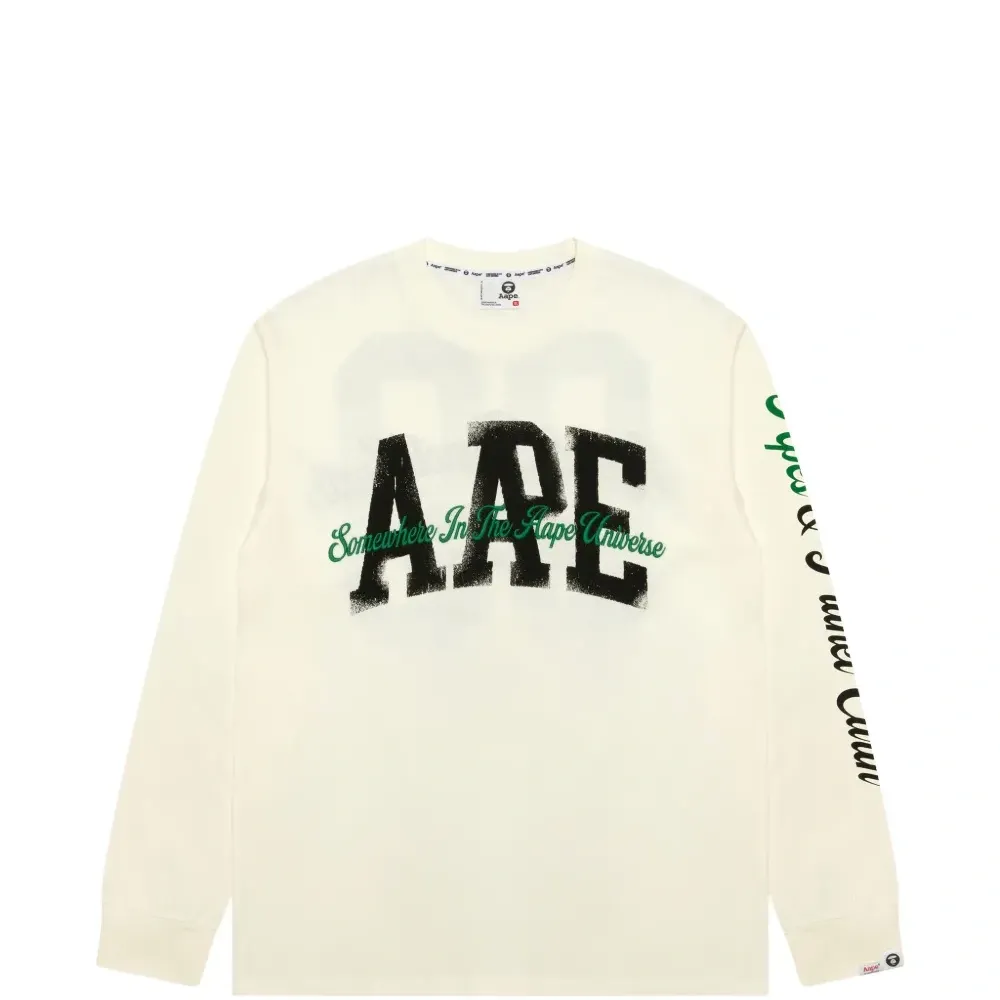 айвори с принтом, длинные рукава, круглый вырез, ребристый нижний край