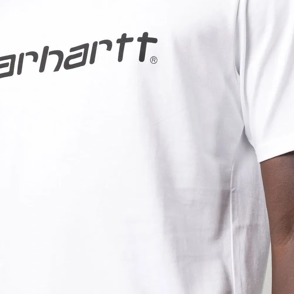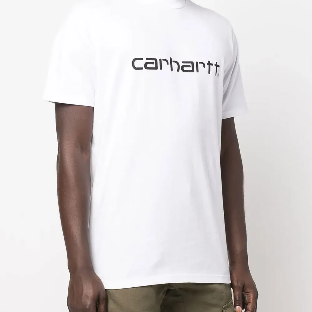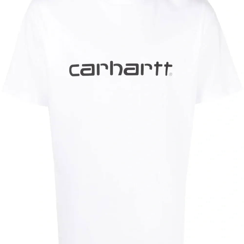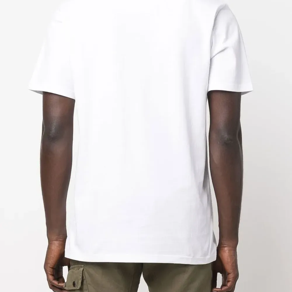 Белый, хлопок, логотип спереди, круглый вырез, короткие рукава и прямой подол.