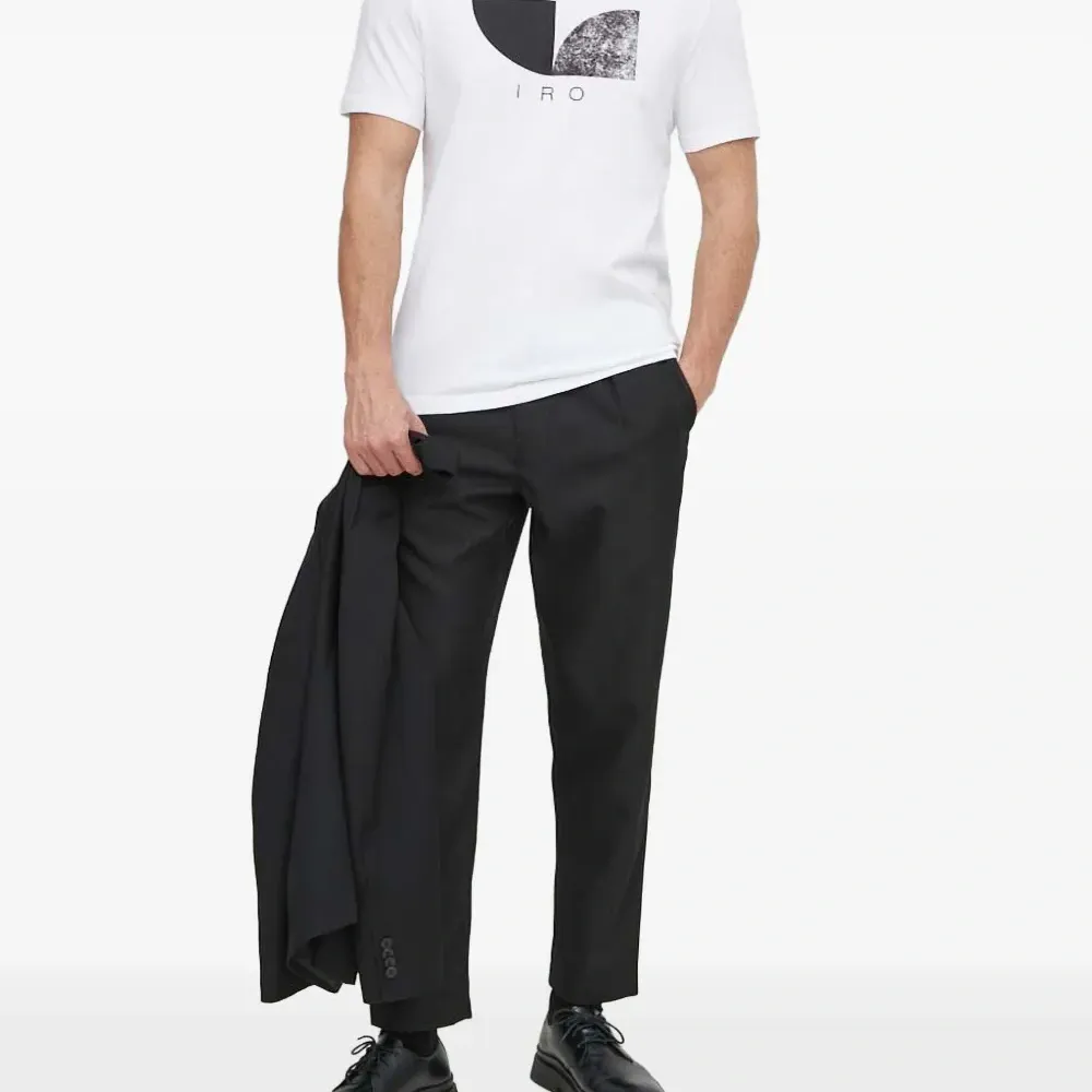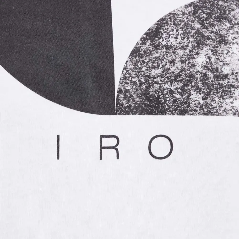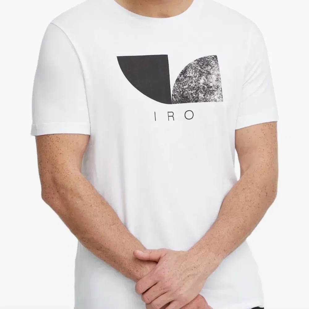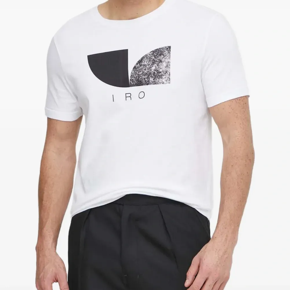 белая футболка с графическим принтом, круглым вырезом и короткими рукавами