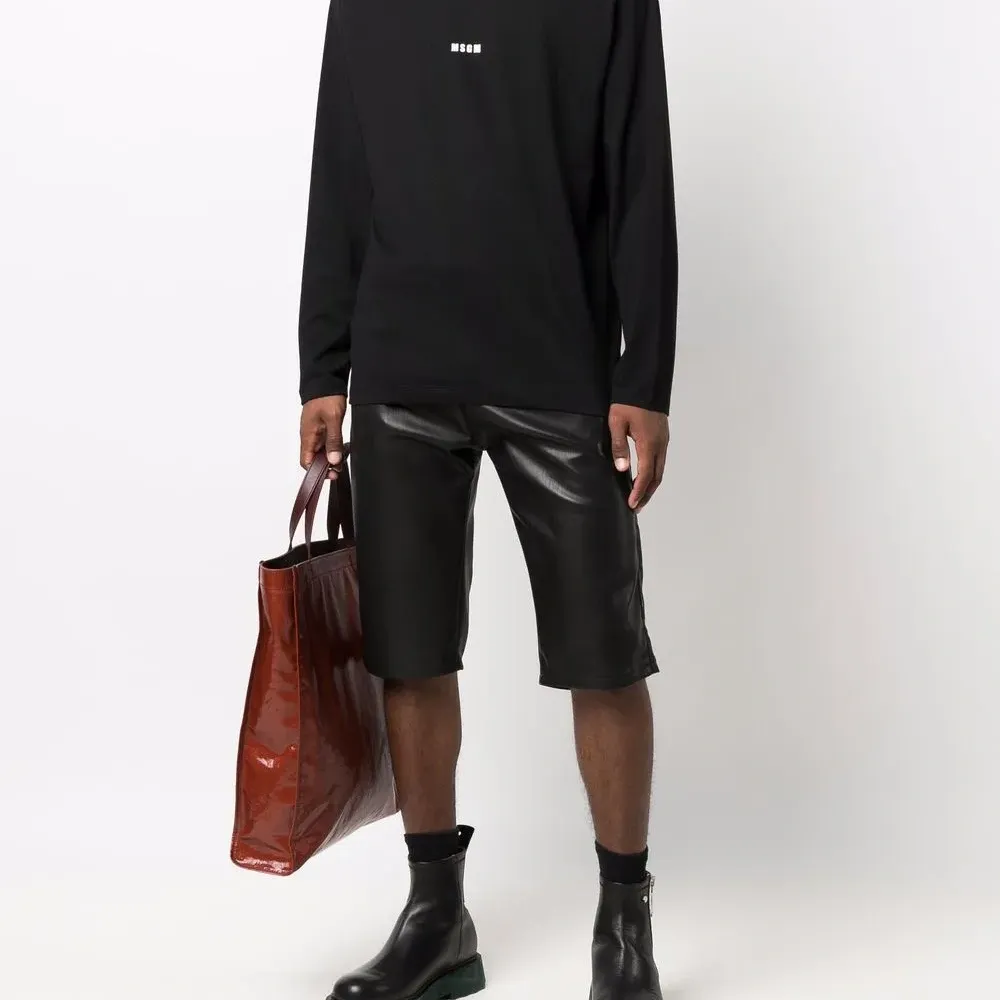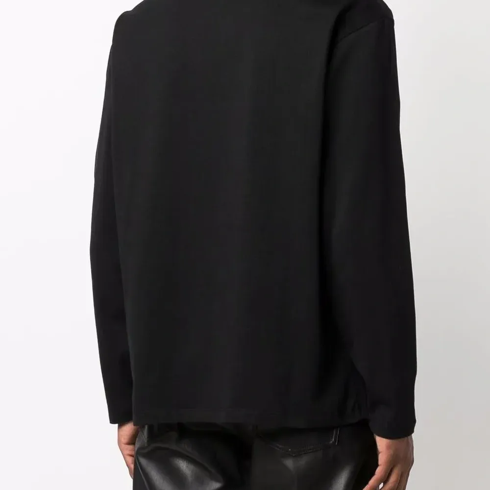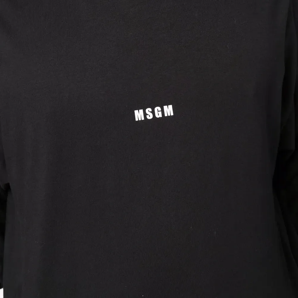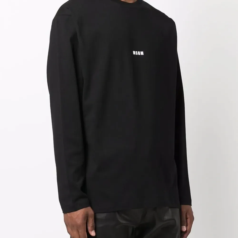 Принт с логотипом на груди, круглый вырез, длинные рукава и прямой подол. Цвет: черный.
