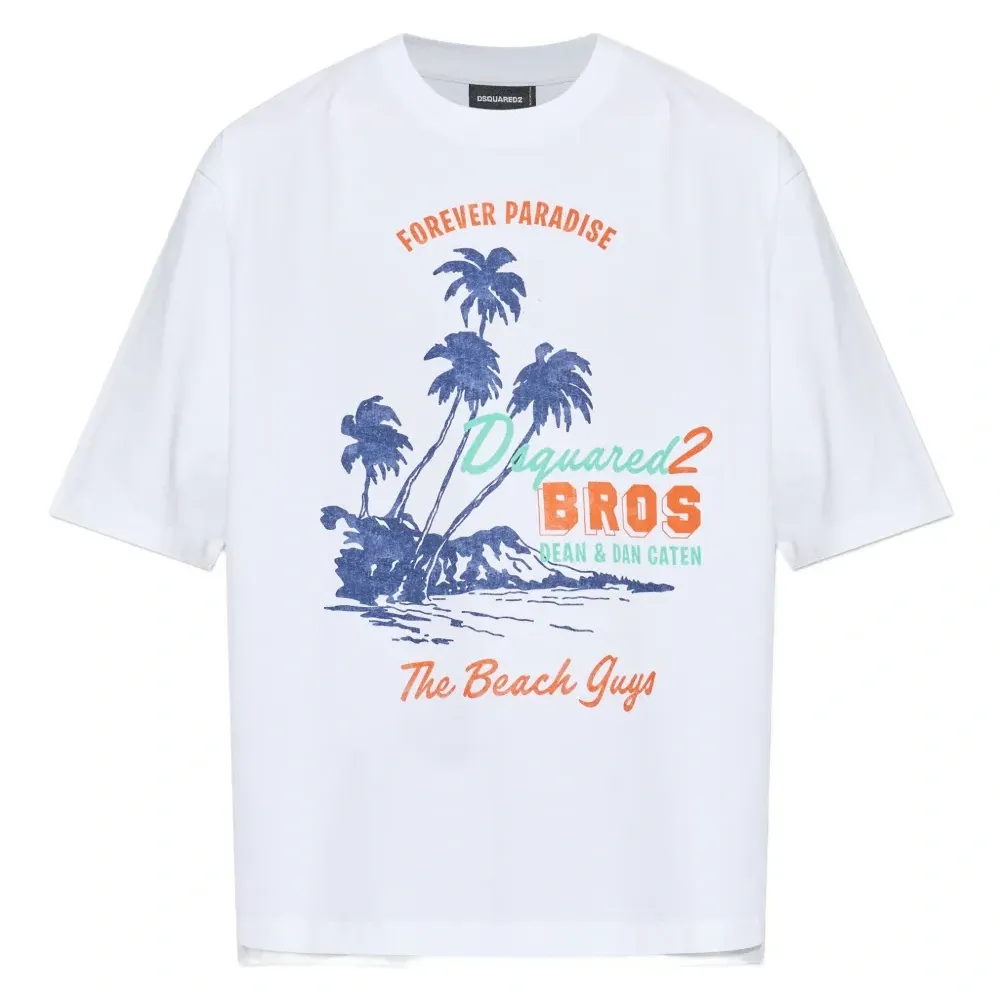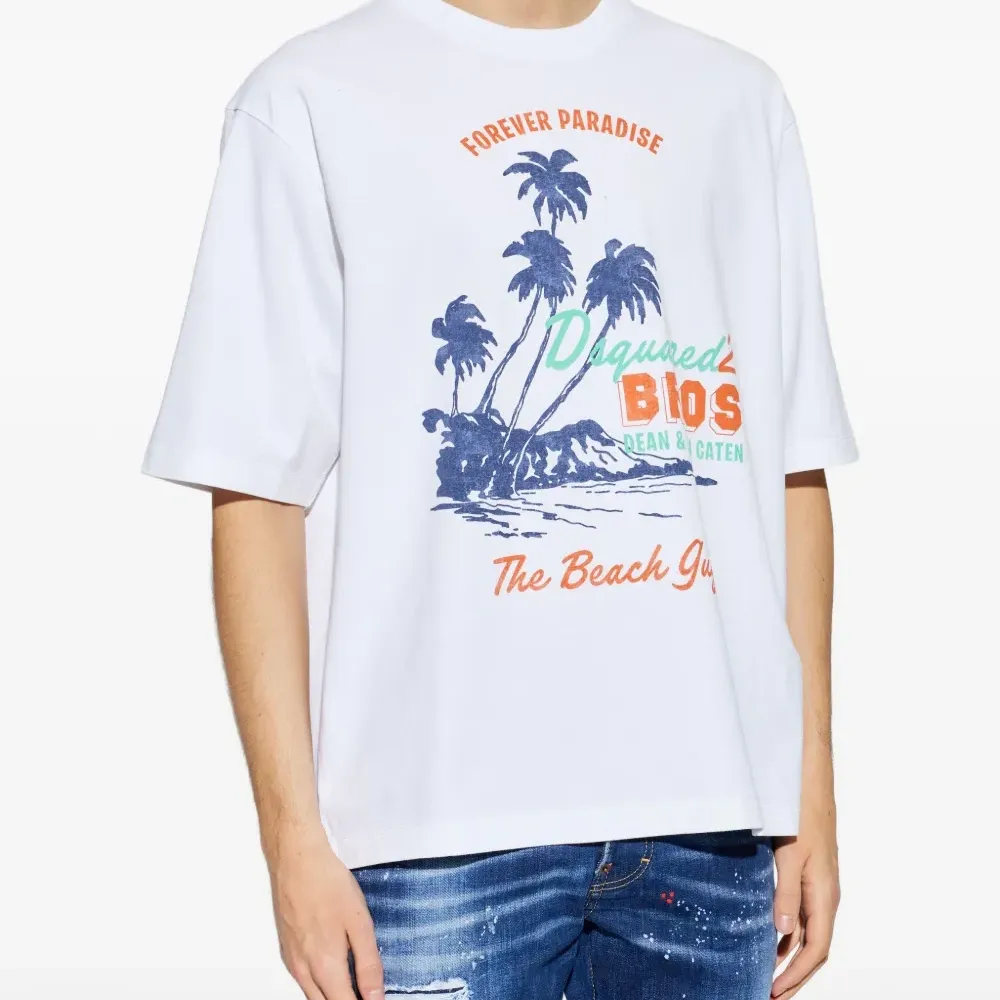 белая футболка с круглым вырезом и короткими рукавами с графическим принтом