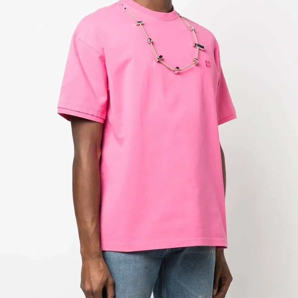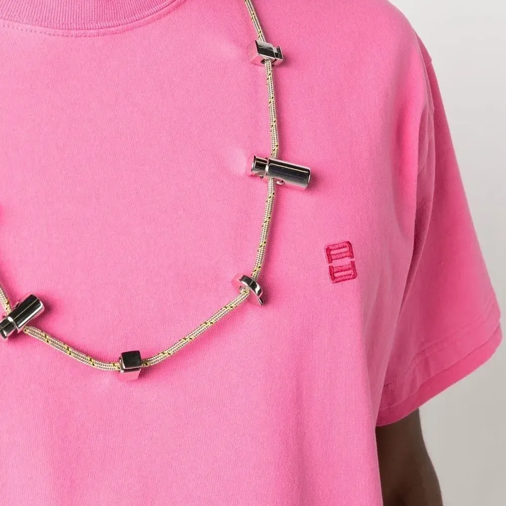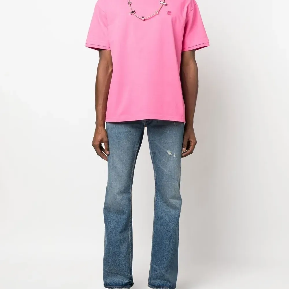 Хлопок, ткань джерси, вышитый логотип на груди, воротник с кулиской, круглый вырез, короткие рукава и прямой подол. Это унисекс-модель. Обратите внимание, что для нее используется мужская размерная сетка.