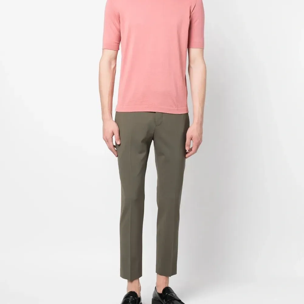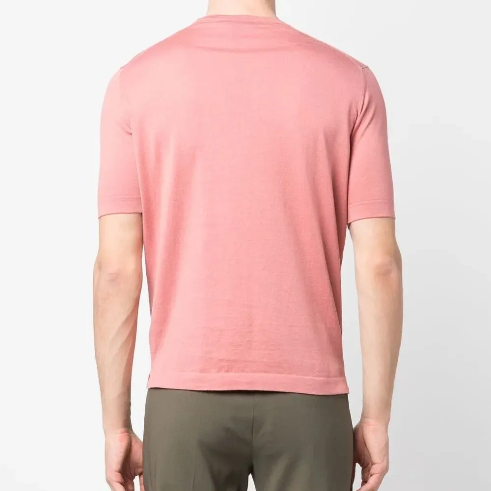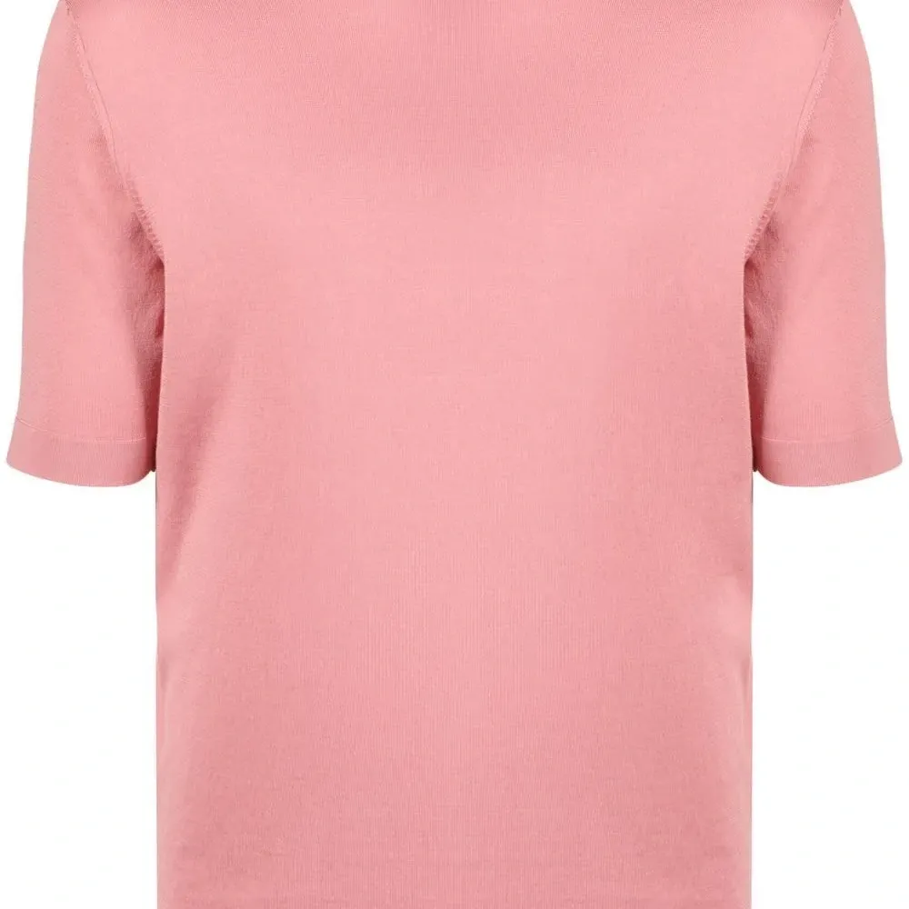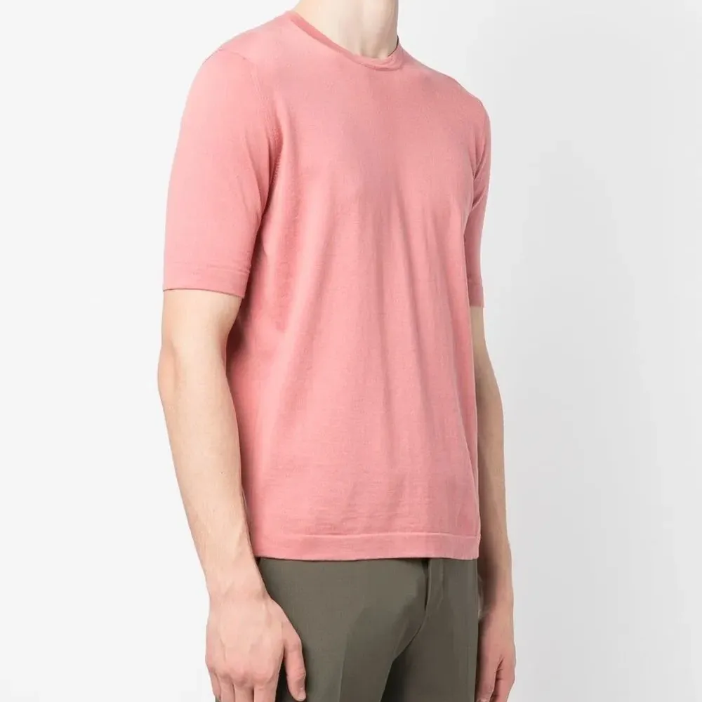 Лососевый, хлопок, круглый вырез, короткие рукава и прямой подол.