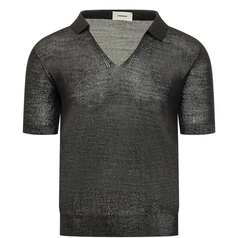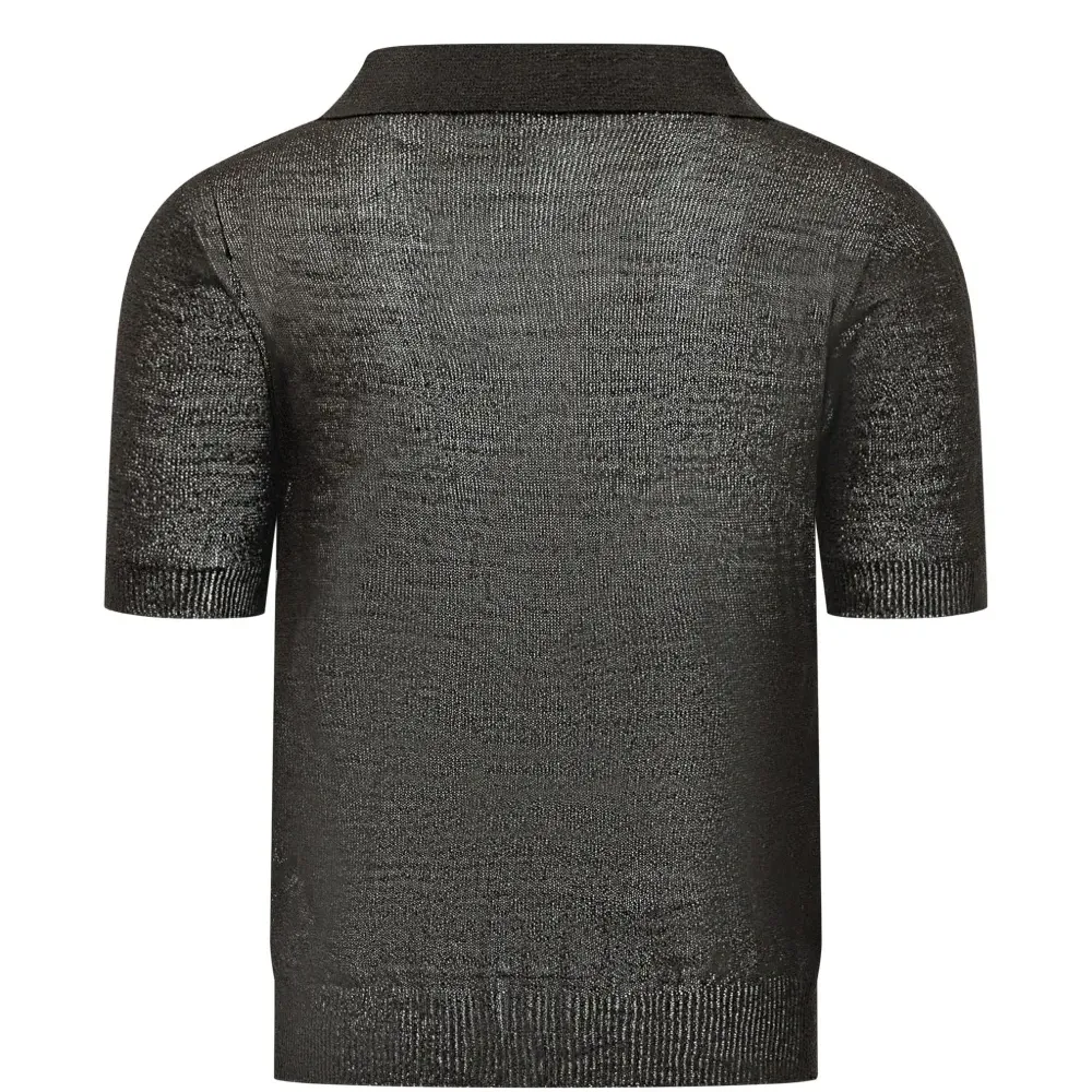 черный вязаный топ с V-образным вырезом и короткими рукавами