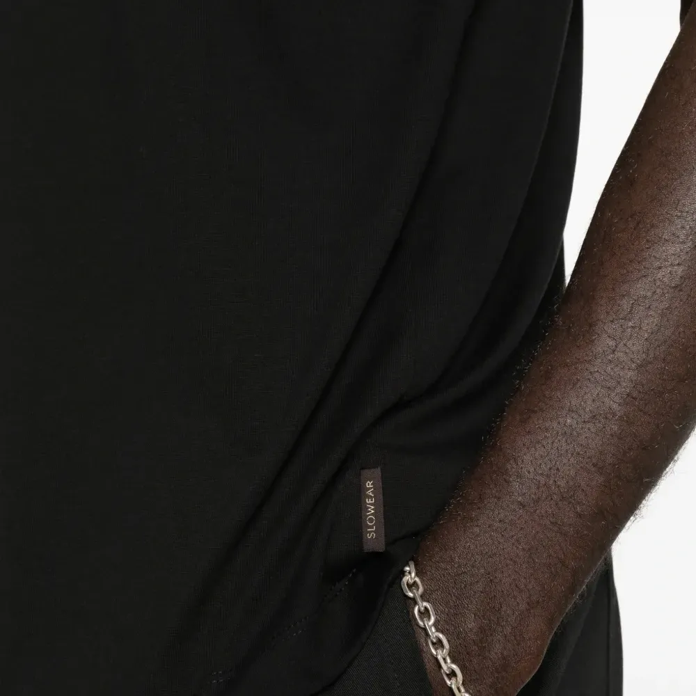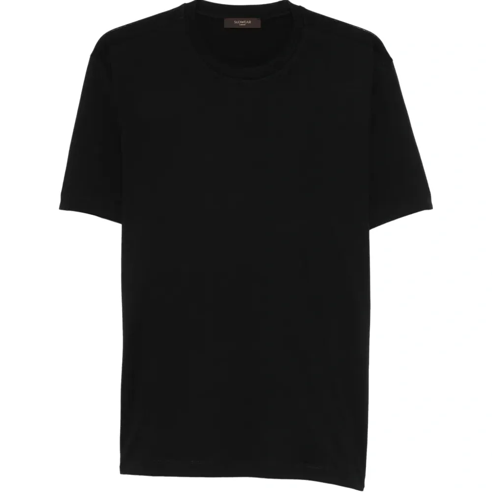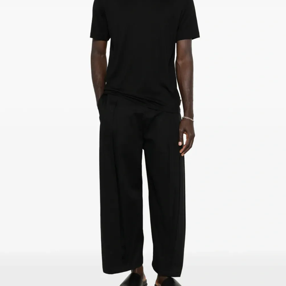 чёрная футболка с круглым вырезом, короткими рукавами и стандартным кроем