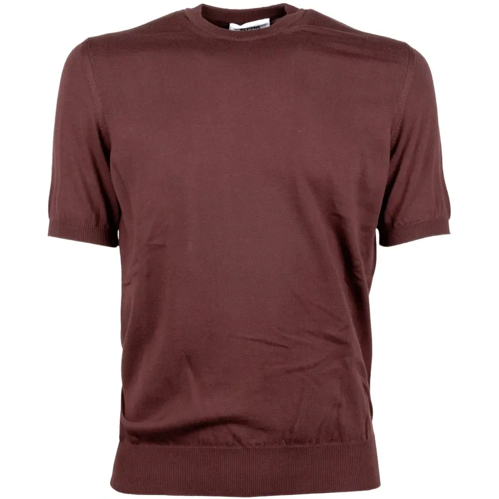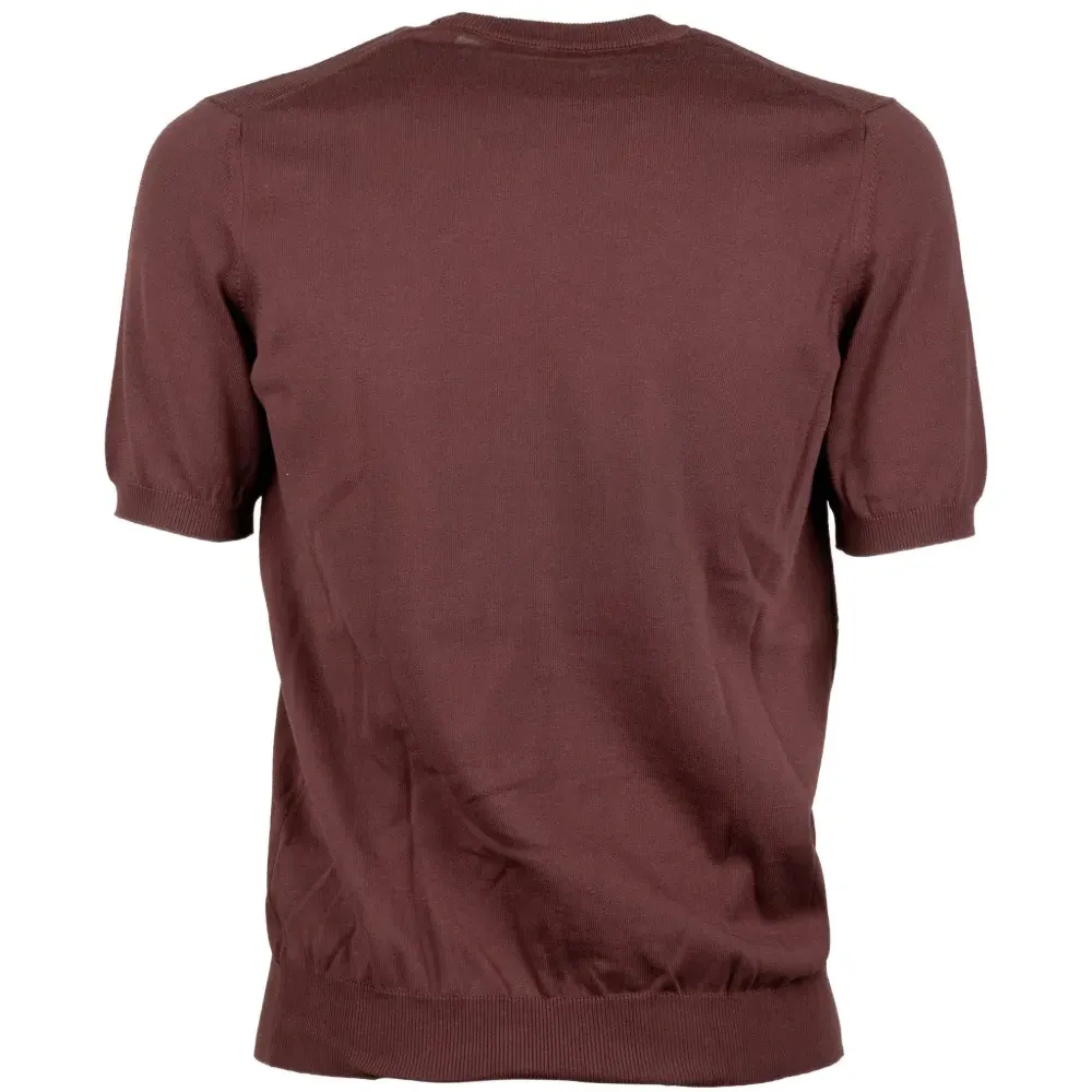 коричневый, с ребристыми манжетами и подолом, круглый вырез, короткие рукава